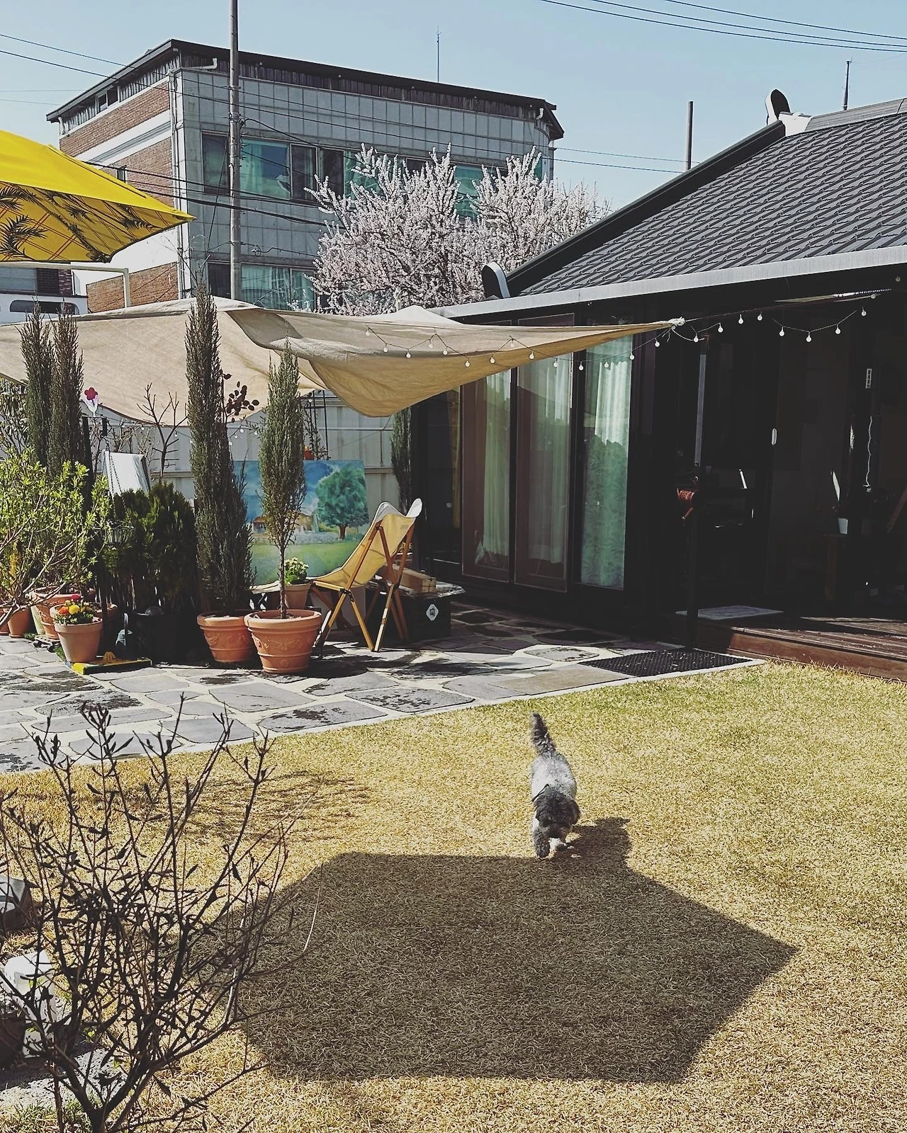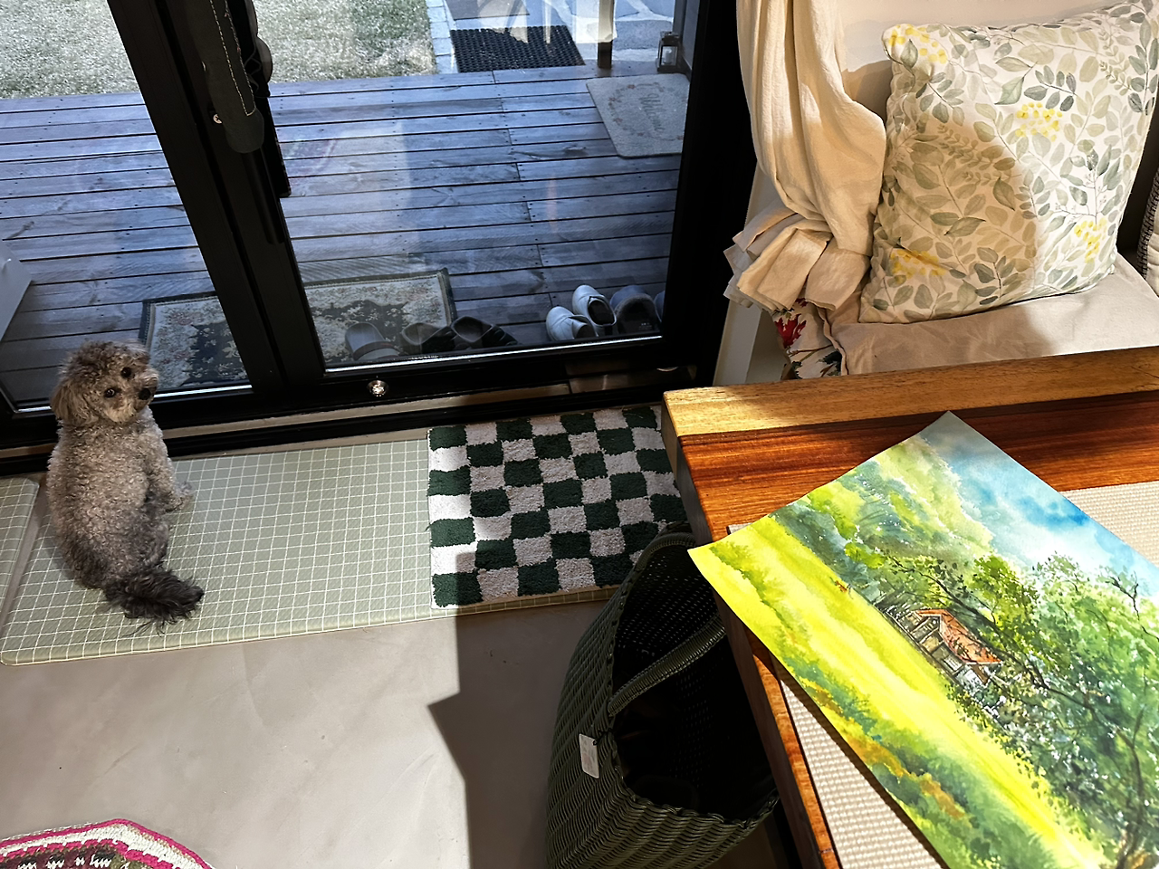 도착하자마자 첫 번째로 한 일은 꽃들에게 물 주기다. 물을 주다 보면 새삼스럽게 새싹을 발견하거나 꽃이 피어난 것을 보고 놀란다. 물 주고 잡초도 뽑은 다음에 우리 강아지 ‘깜뽀’하고 공놀이도 한다. 대체 몇 번을 던져야 하는지 모르겠다. 매일 공 던지기로 시작해서 공 던지기로 끝나는 것 같다. 그렇게나 공놀이가 좋은지 아주 신이 났다. 쉬는 건 아주 잠시다.