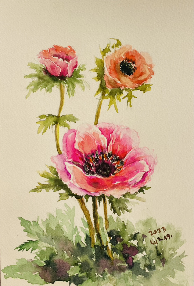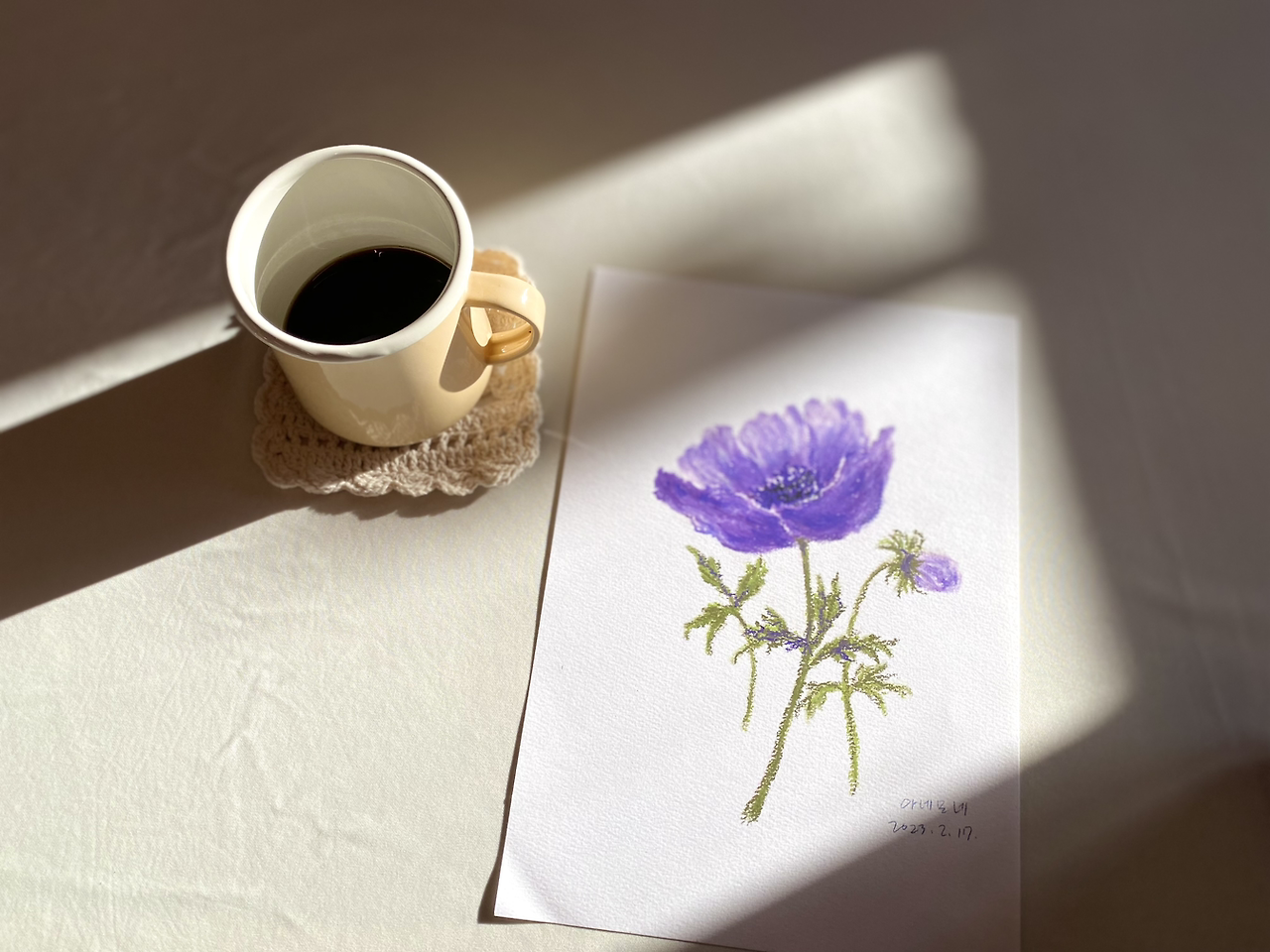 그림수업을 위해 사서 심었던 아네모네가 지금도 피고 지기를 반복한다.