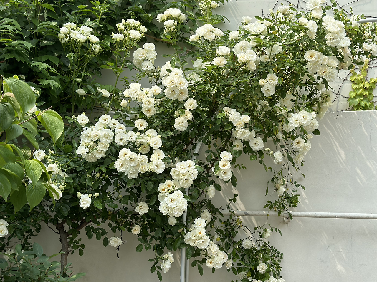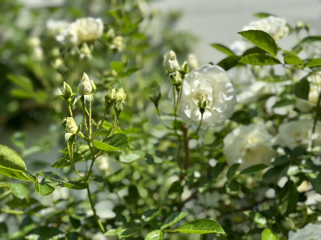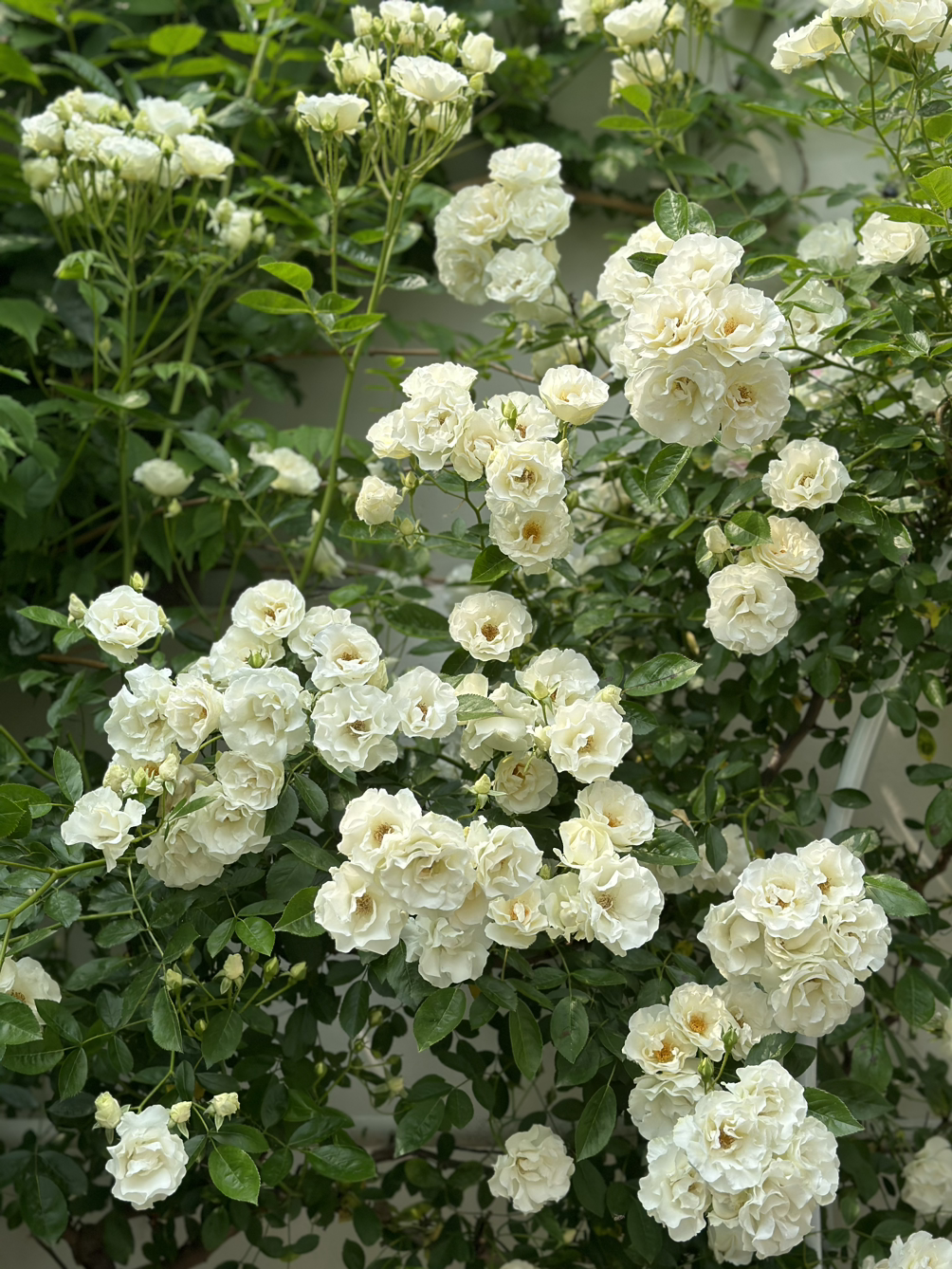 올해는 유난히 장미들이 만발했다. 이제 뿌리를 잘 내렸나 보다. 이들 중, 가시 없는 장미가 있다. 연노랑 목향장미다. 썬룸을 타고 올라가게 할 요량이다.