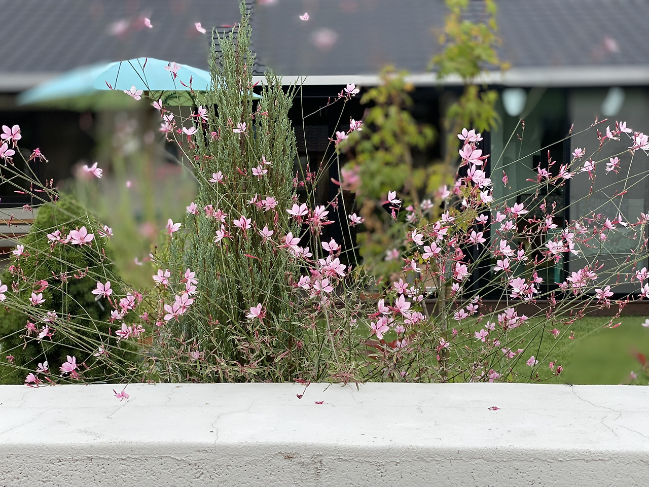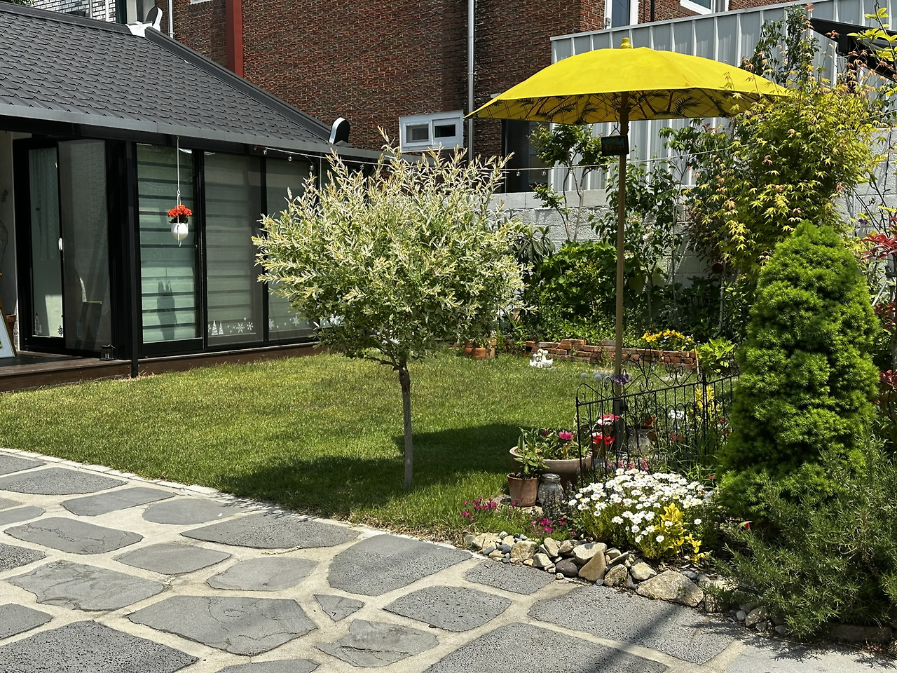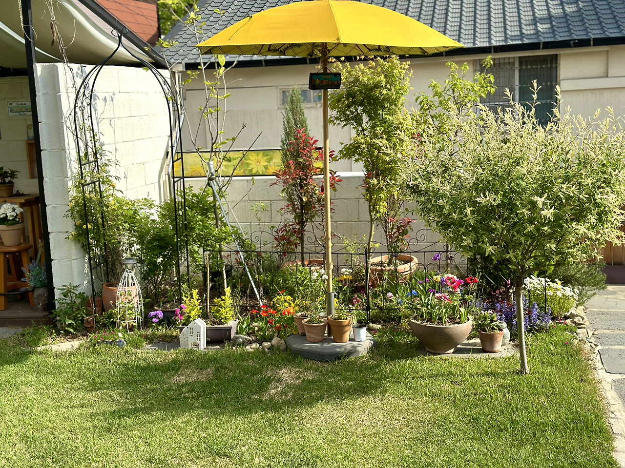 수십 가지의 꽃이 있기 때문에 사진에 모두 담기 어렵다. ㅁ 자 형태로 화단이 있어서 실제로 ‘공간 모닝’의 화단은 규모가 작지 않다. 동편 화단의 길이가 가장 길고 크다.
