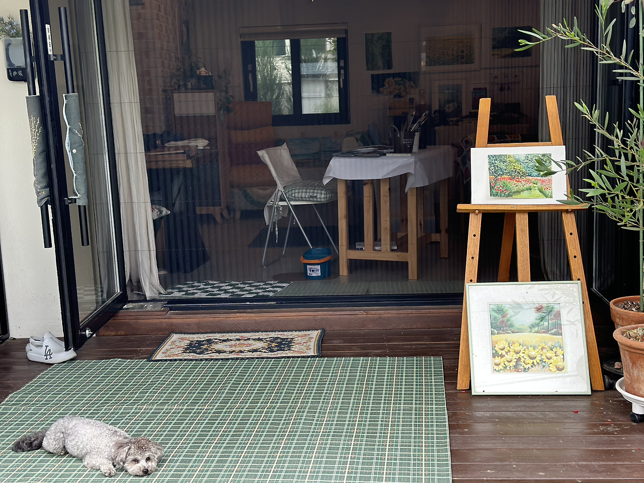 내가 이렇게 부산하게 움직일 때 울 강아지 깜뽀는 나를 따라다니거나 이렇게 앉아서 감상한다. 이럴 때 전라도 어른들께서 하시는 말씀이 생각난다.