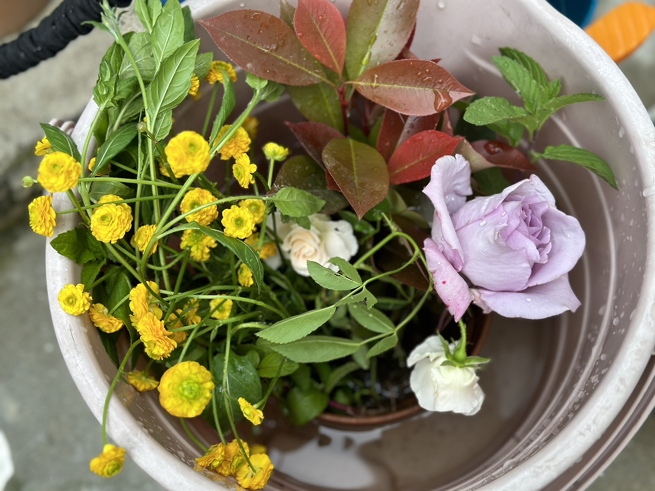 5천 원이나 6천 원 정도 주고 장미 화분을 사면 화분상태로 한참 본 후, 땅에 심는다. 그런 작은 장미들은 대부분 약해서 죽지만 정성을 들이면 살아남는다.