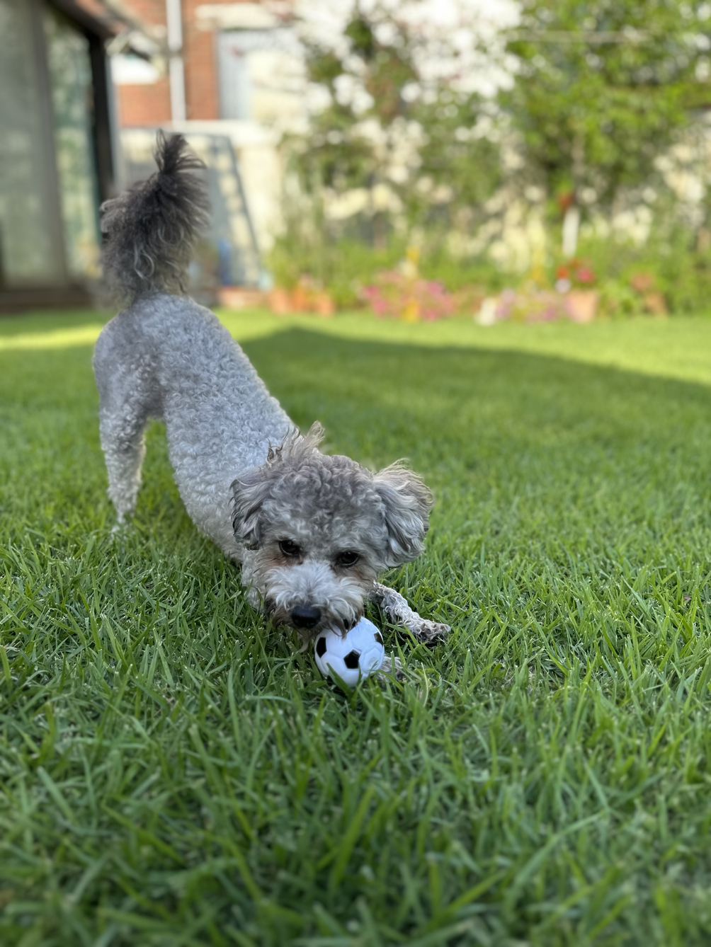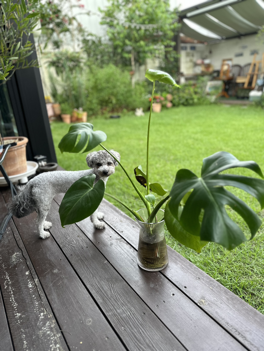 커피를 내리는 시간에는 깜뽀가 한달음에 달려와서 초롱초롱한 눈망울로 나를 본다. 손님들께 커피 낼 때 다과를 내는 경우가 많은데 그때 깜뽀도 간식타임이 되었다. 깜뽀는 어릴 때부터 다른 간식을 많이 주지 않았다. 하루 먹을 양의 사료 중 일부를 간식처럼 줬기 때문인지 매일 잔디에 나가 놀아서 그런지 적당한 몸매를 유지하고 있다. 3kg이다.