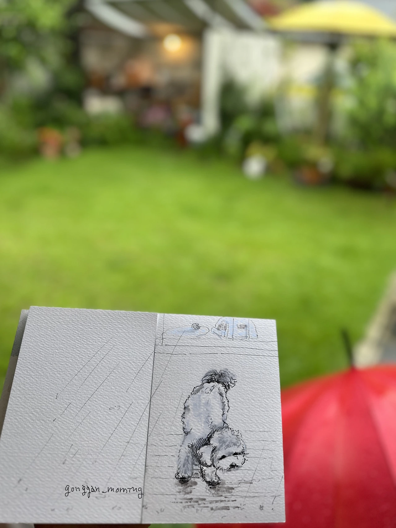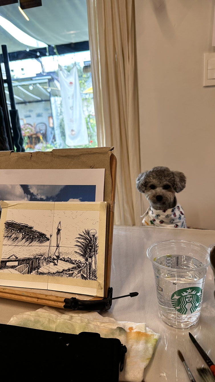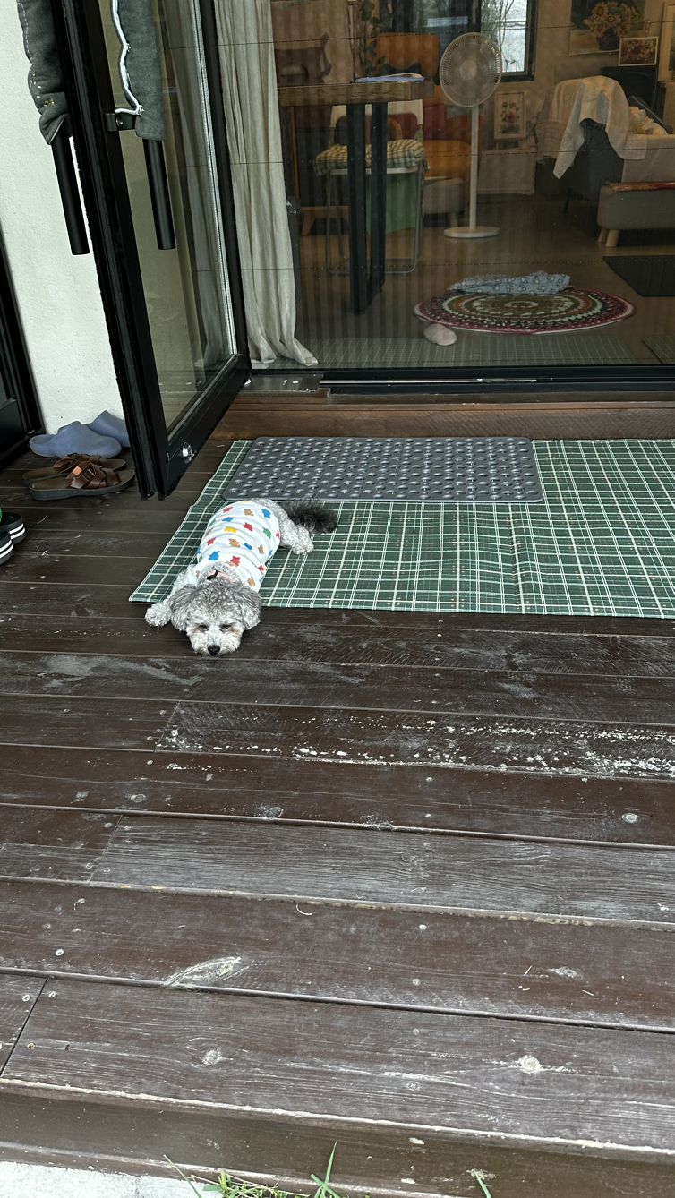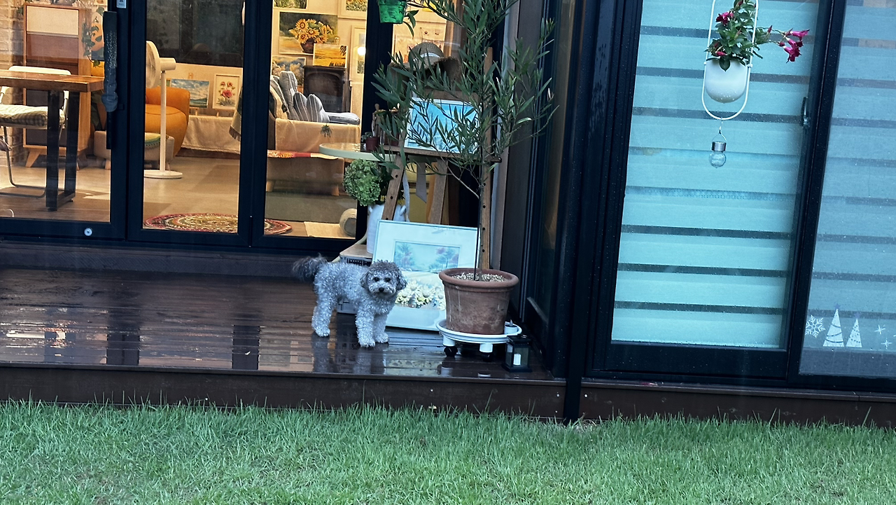 이번 여름은 장마도 길었고 장마 후에도 비가 자주 내렸다. 비 오는 어느 날 깜뽀를 공방에 데리고 가지 않았다. 수강생들께서 연신 “깜뽀가 없으니 이상하네요.”, “깜뽀 왜 안 왔어요? “ 하시면서 강아지를 찾으셨다.