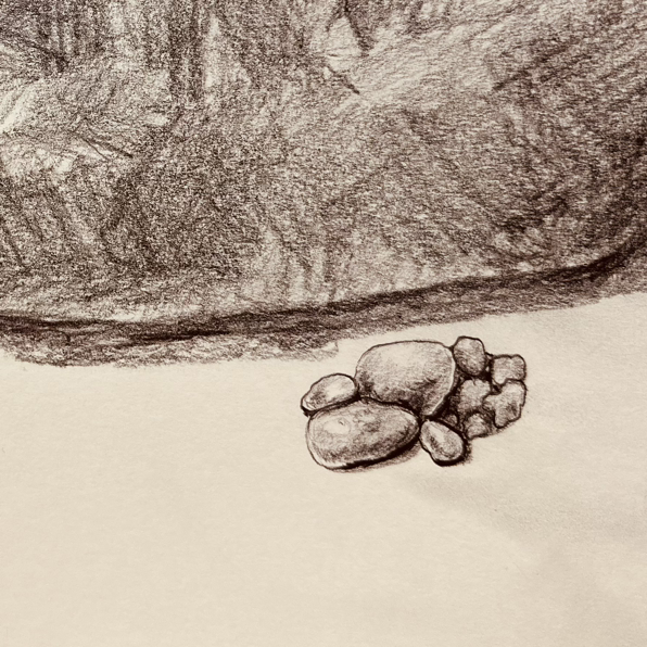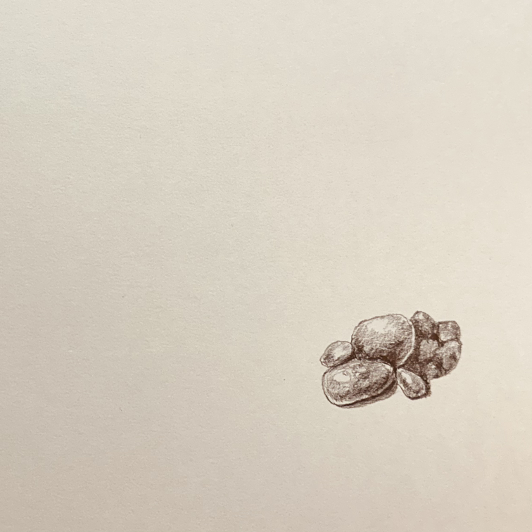 아무렇게나 굴러다니는 돌멩이 하나를 올려놓고 관찰했다. 아직은 몽글해지지 않아 투박한 돌멩이다.