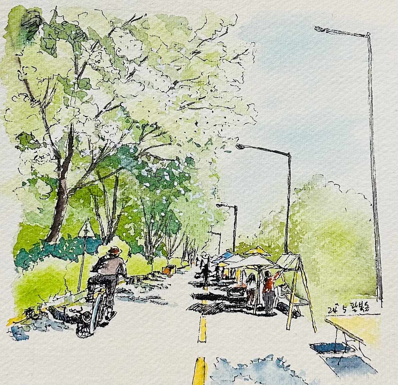 마지막에 그림하나 남았다. 내년엔 그늘에 앉아 몇 장 그려야겠다.