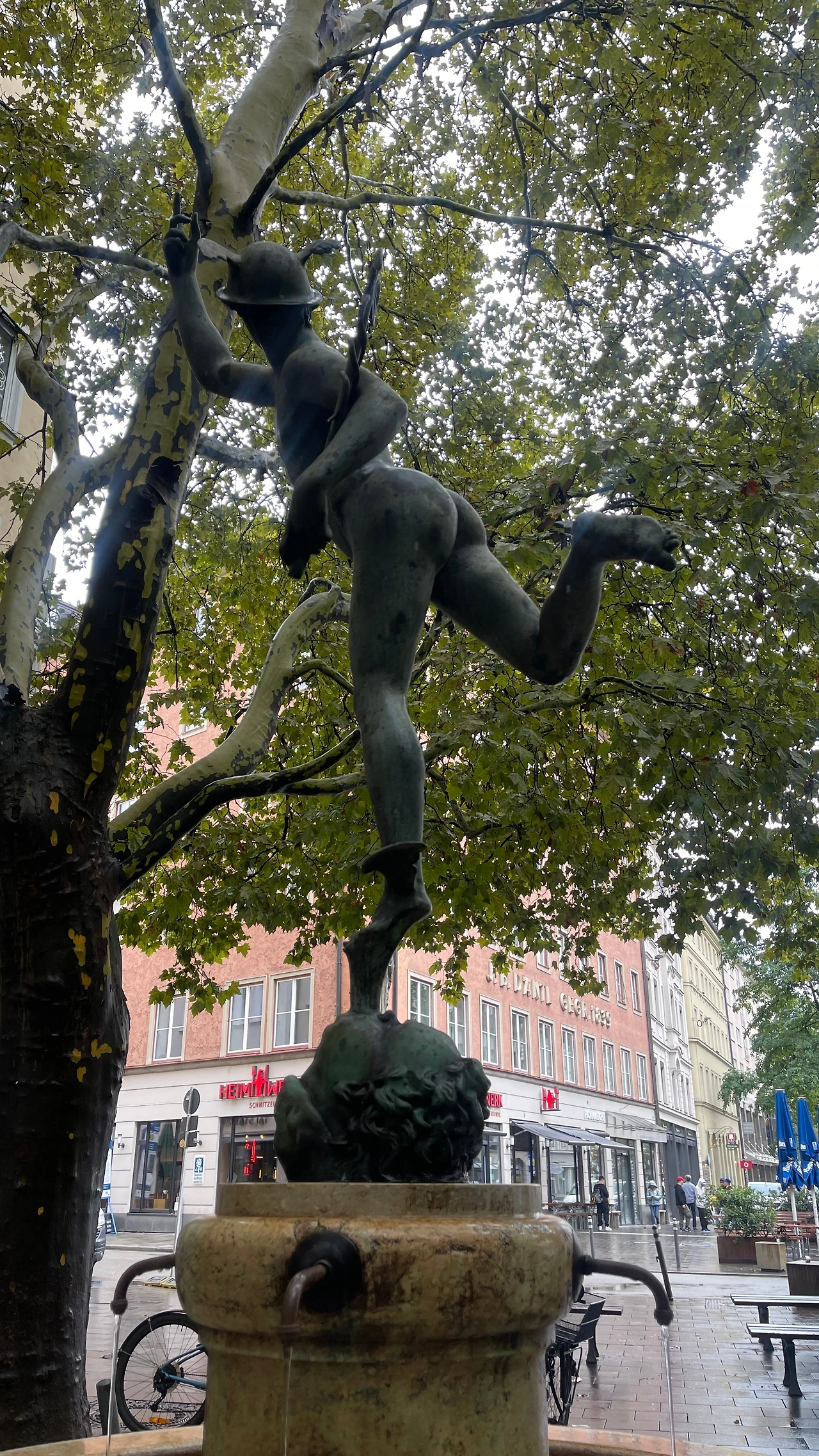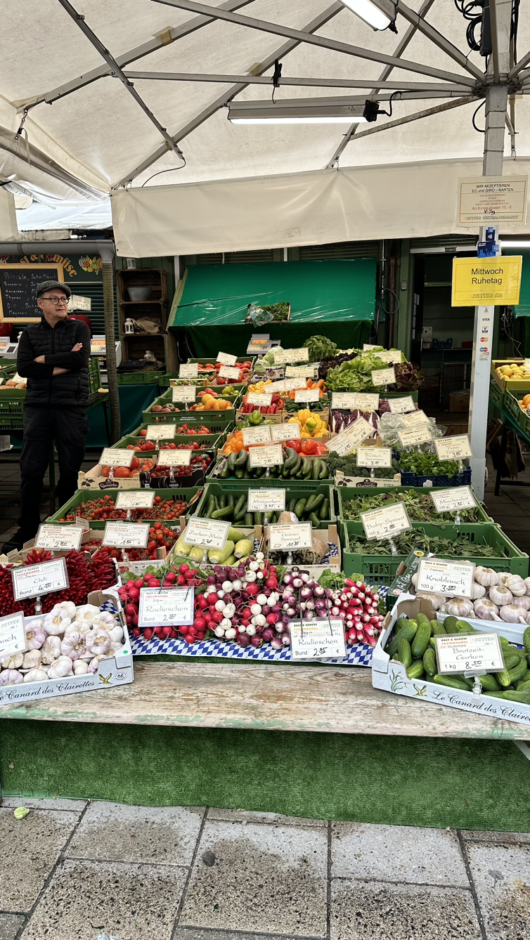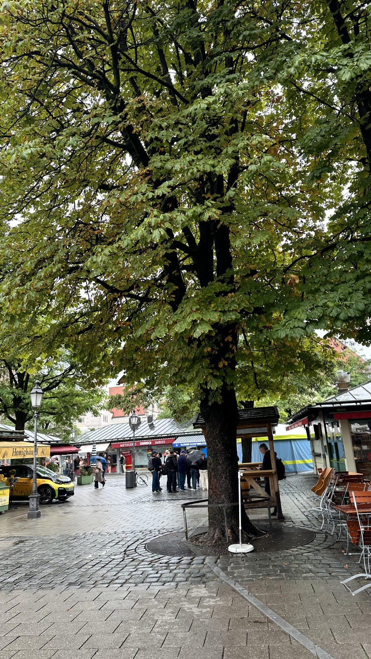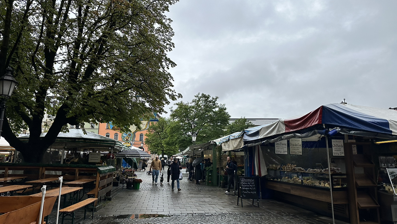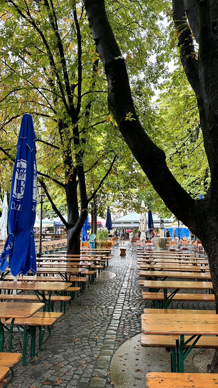 이곳에서 간단한 먹거리와 맥주를 마실 수 있도록 바로 근처에 엄청나게 넓은 테이블과 의자가 마련되어 있다. 아쉽게 비가 내려서 야외 테이블에 앉기는 어려웠다. 여행을 계획한 딸은 그 점을 못내 아쉬워했다. 몇 년 전 혼자 뮌헨여행했을 때 그 모습이 가장 인상적이어서 엄마를 위해 준비했다고 한다. 엄마는 애주가이며 자유로운 영혼이라는 것을 잘 알기 때문이다.