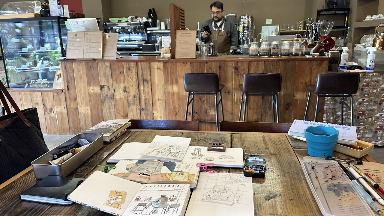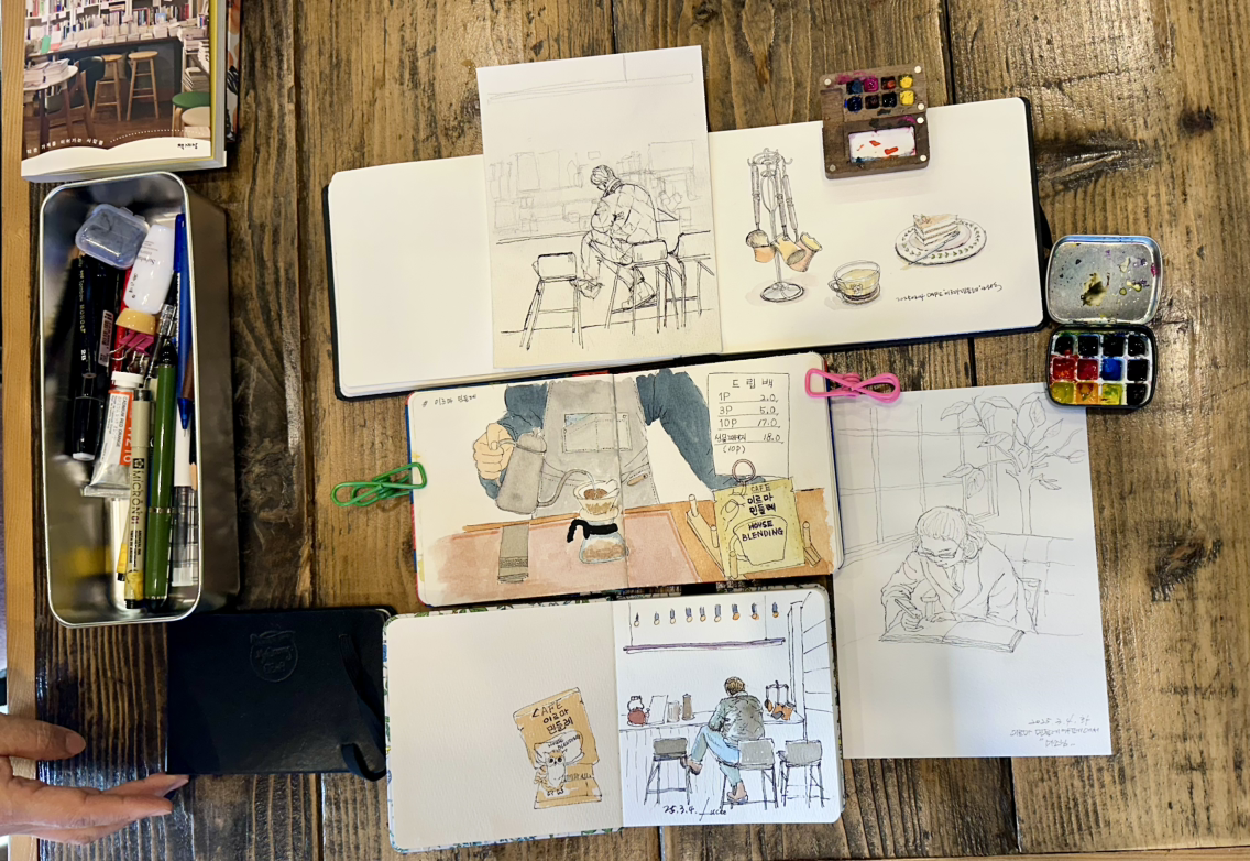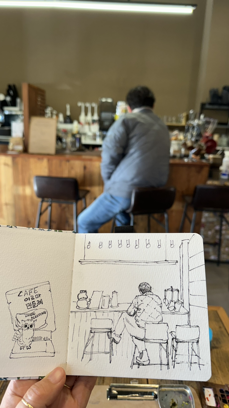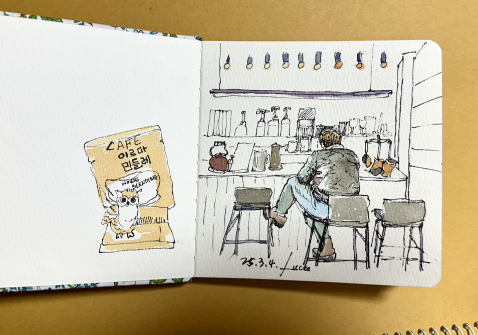카페 이르마 민들레에서 내가 만든 그림 동아리 <전주 어반 드로잉 로그> 회원님들과 어반스케치했다.