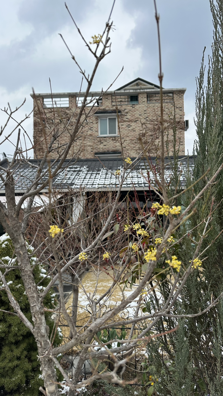 일찍 핀 산수유 꽃도 놀라서 얼얼하다. 산수유 꽃은 누구 탓을 해야 하나? 이것도 내 탓이다. 내가 오지 않는 봄을 원망해서다.