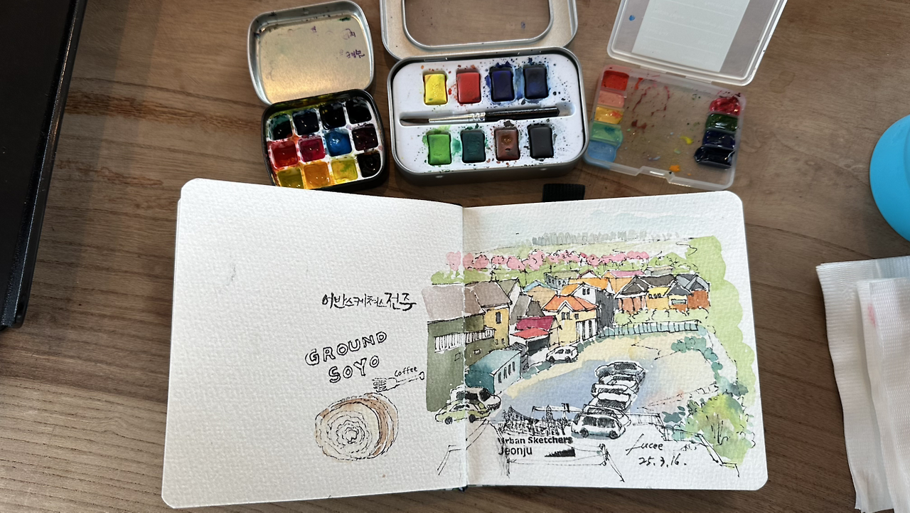 어반 스케치 취지에 맞게 운영하려고 했다. 어반스케치는 현장을 생생하게 표현하는 것이다. 그런데 요즘은 그냥 자기가 그리고 싶은 것을 그려도 좋다는 취지다.