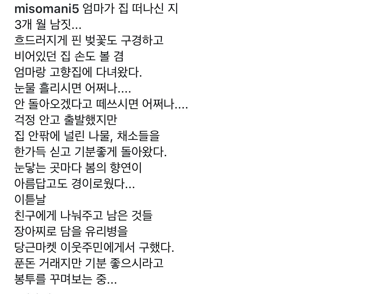 오늘 인스타 올린 내용이다.