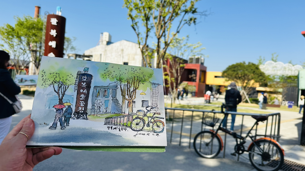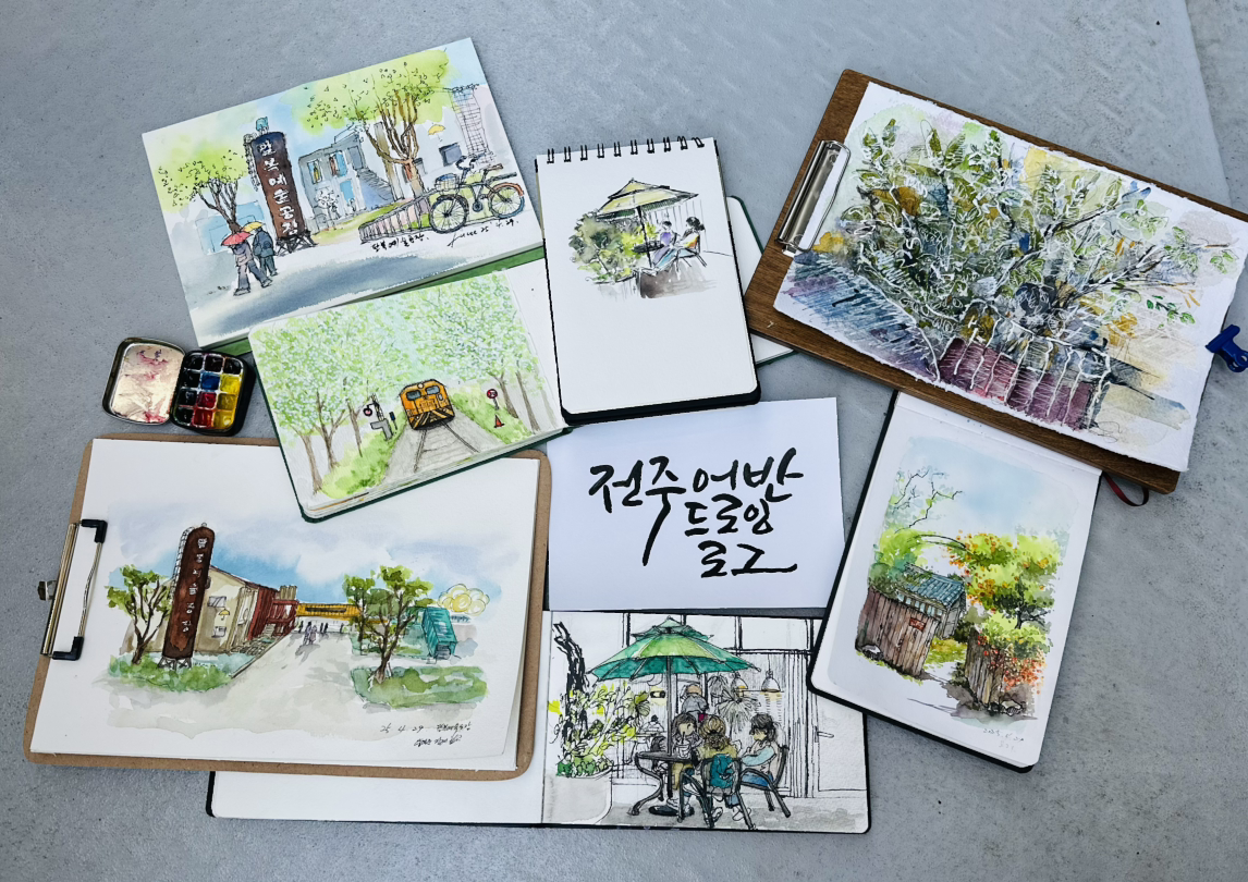 주말이 아닌데도 여행객들이 많아서 놀랍다. 한쪽에 앉아 얼른 스케치를 한다.