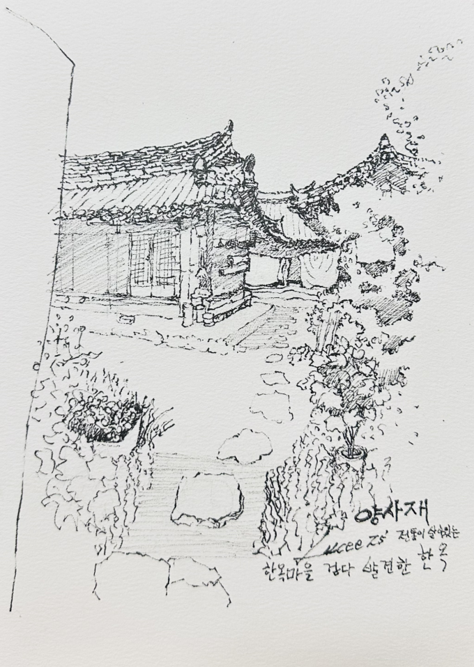 결국 한옥마을 지인의 작업실에 들어가 스케치를 했다.