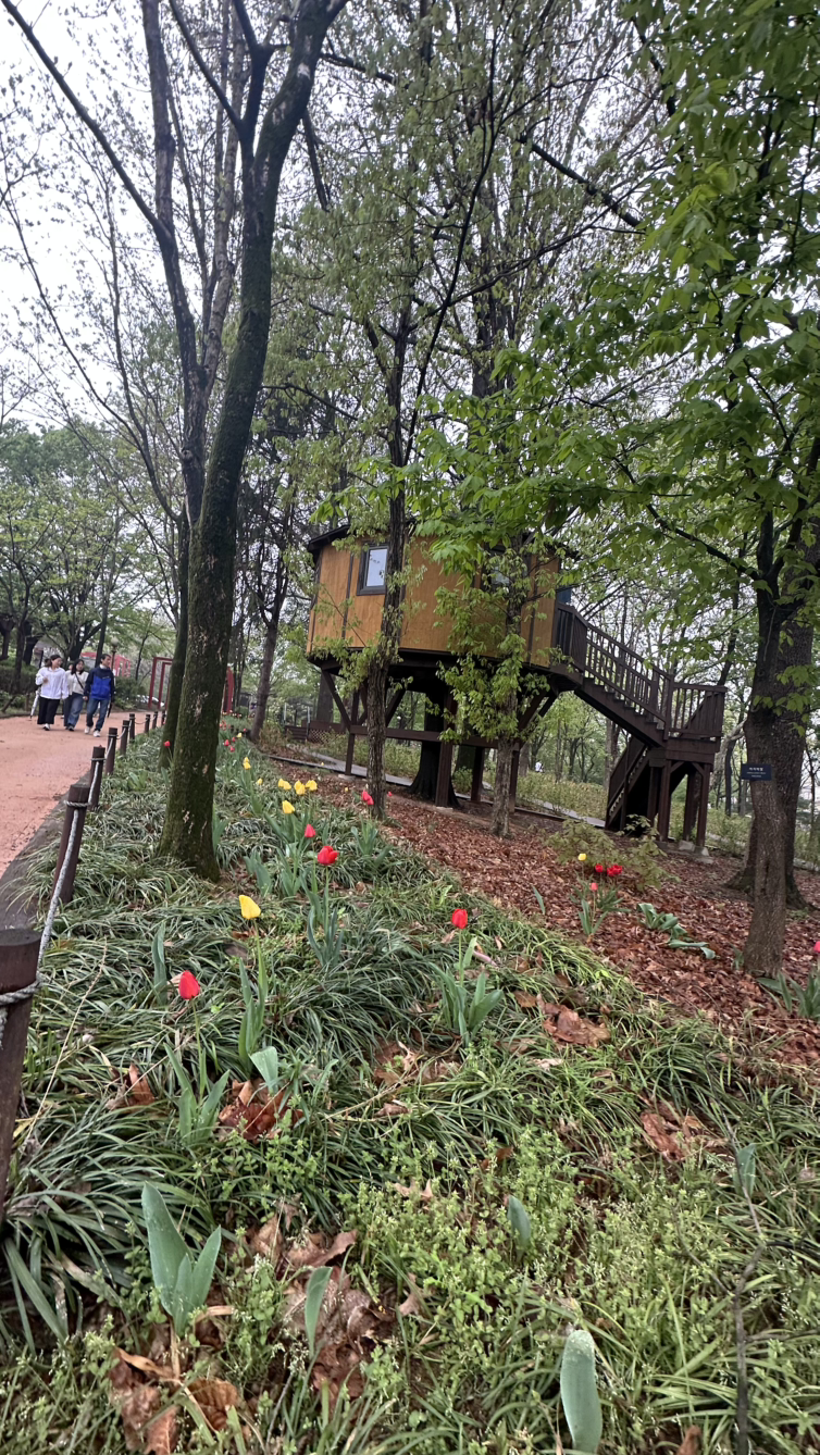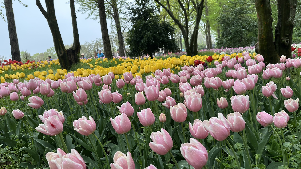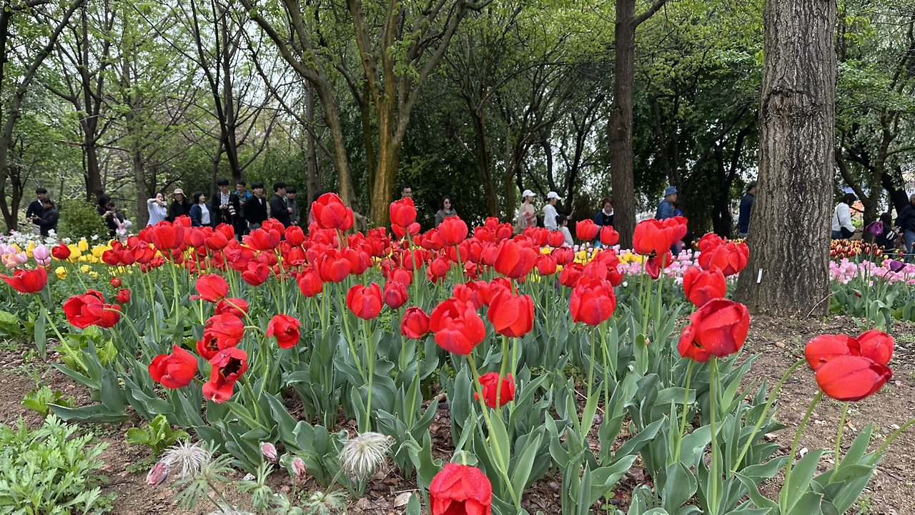 튤립이 가득한 수목원에서 만난 커플이 눈에 띈다.