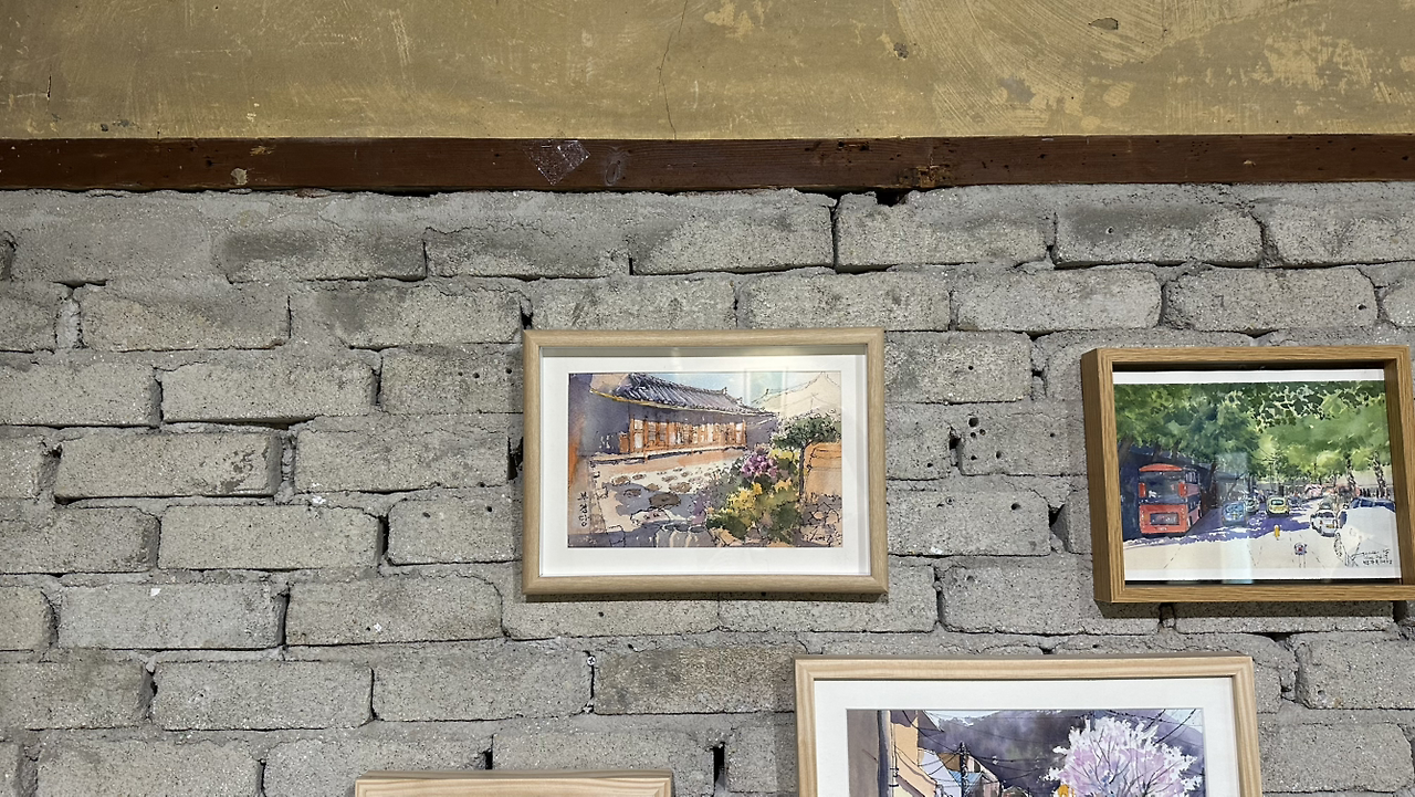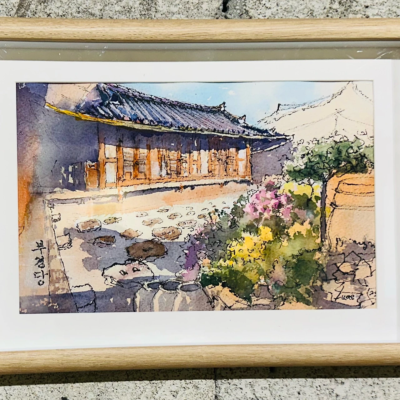 그림의 사진을 남겼어야 했는데 깜빡하고 사진을 남기지 못해 그저 이런 이미지만 있다. 햇살이 드는 ‘부경당’ 전주 한옥마을 숙소를 그린 것이다.