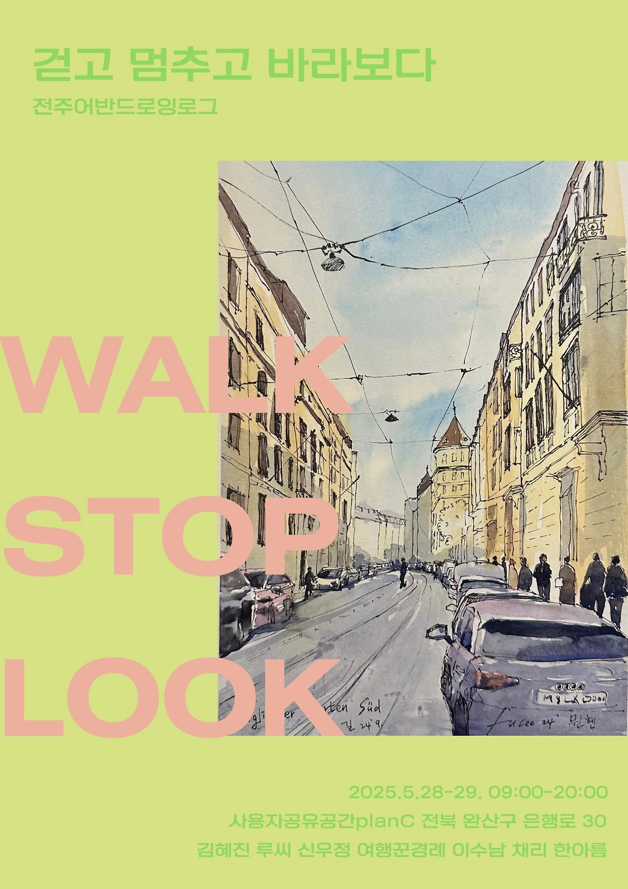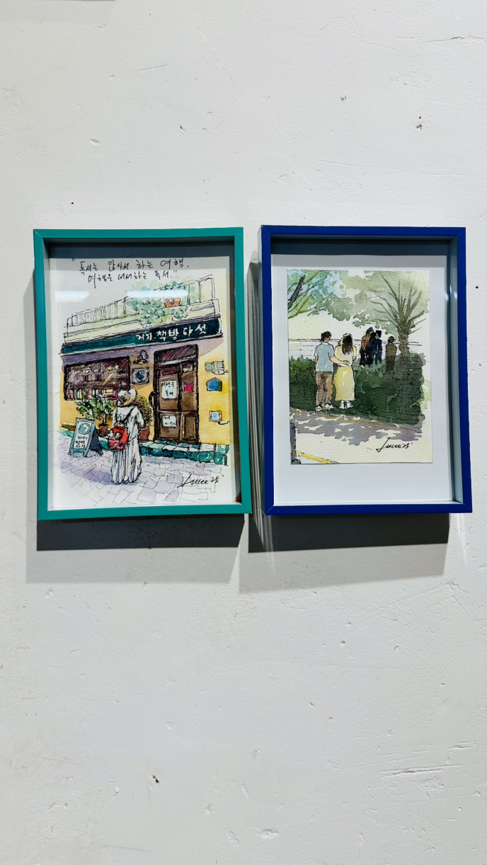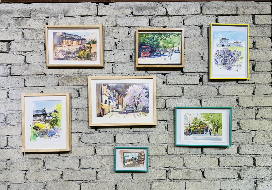 현재 매주 화요일에 어반 스케치를 빠지지 않고 나오는 회원은 열명 정도다. 그중 전시에 참여 한 회원은 7명이다.