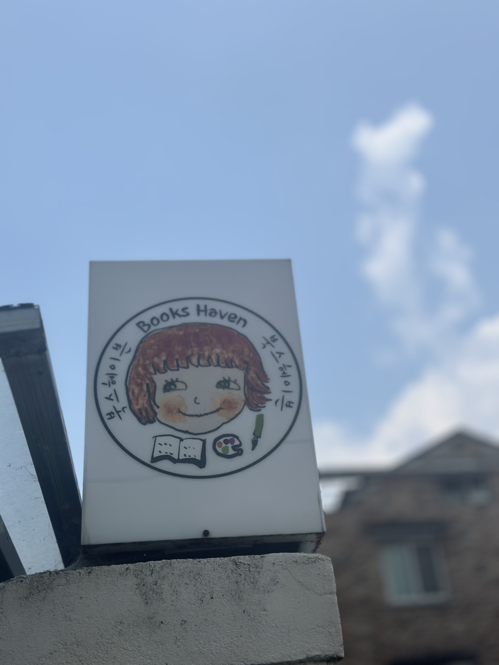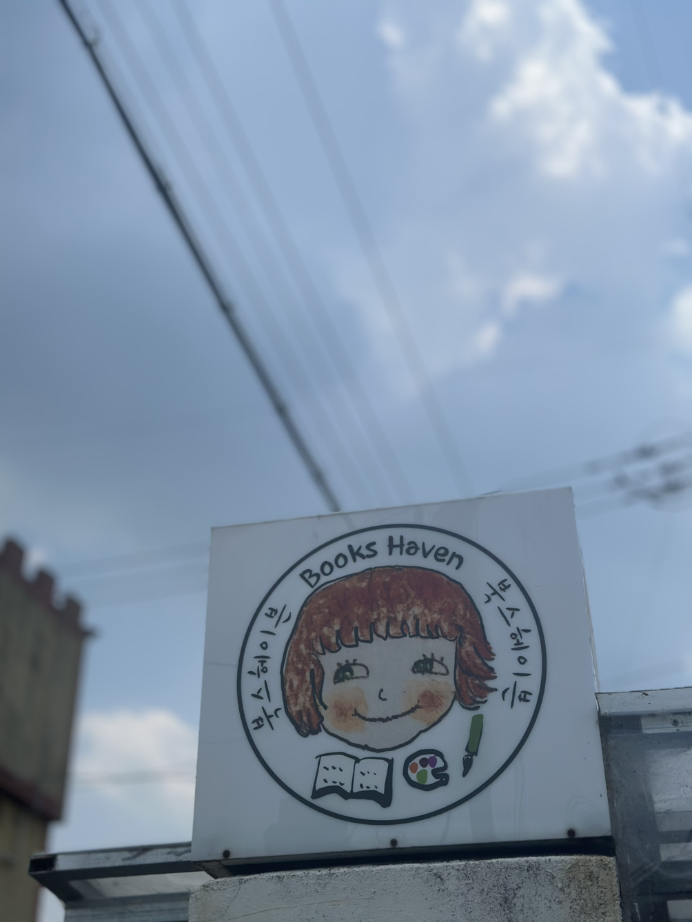오늘 북스헤이븐 간판을 바꿨다. 하나는 내가 그린 그림으로 로고를 만들었다.