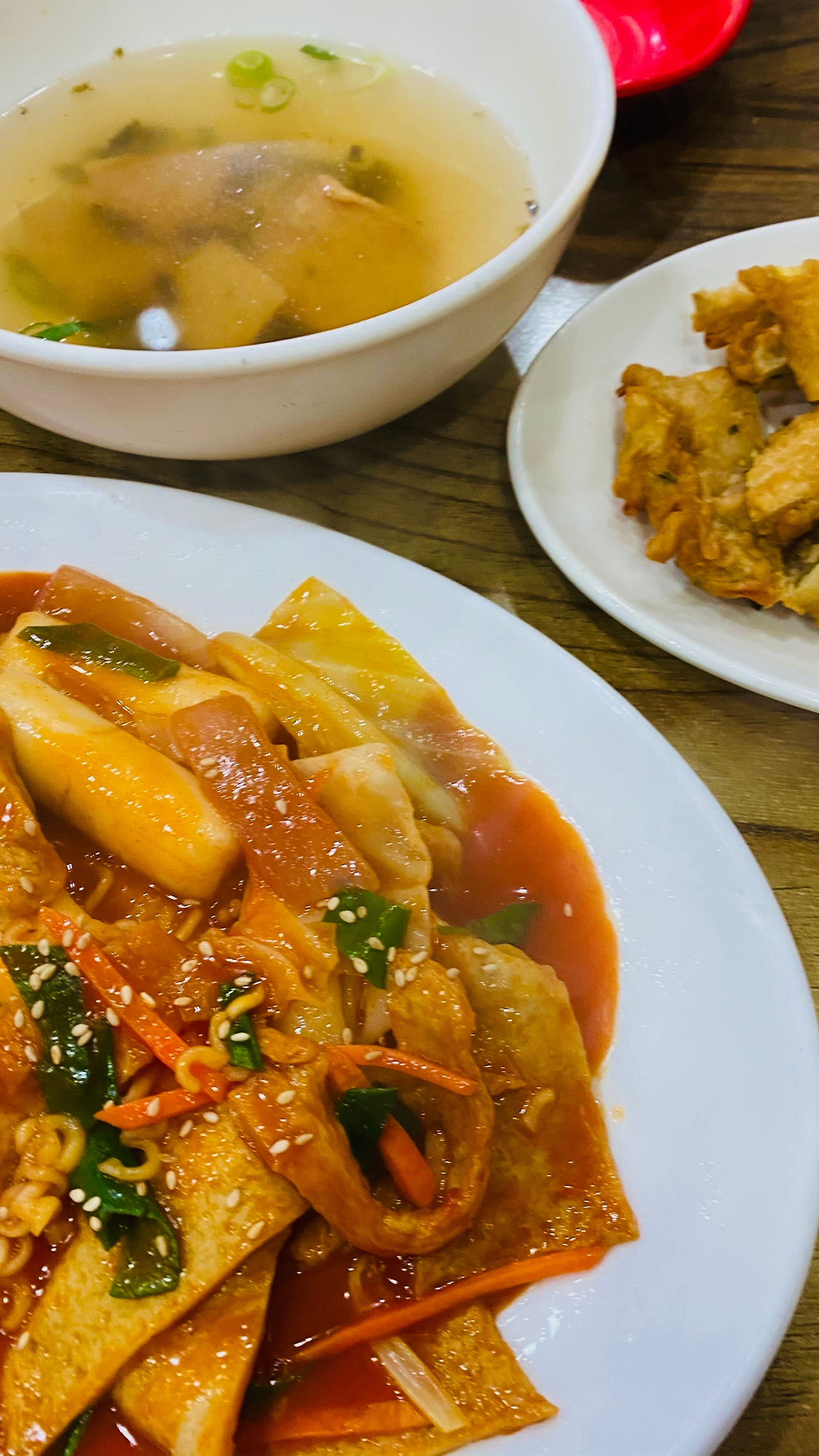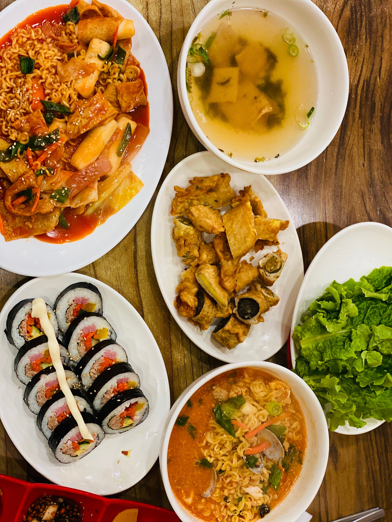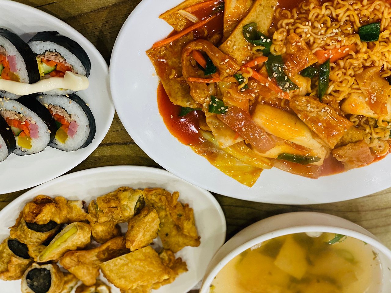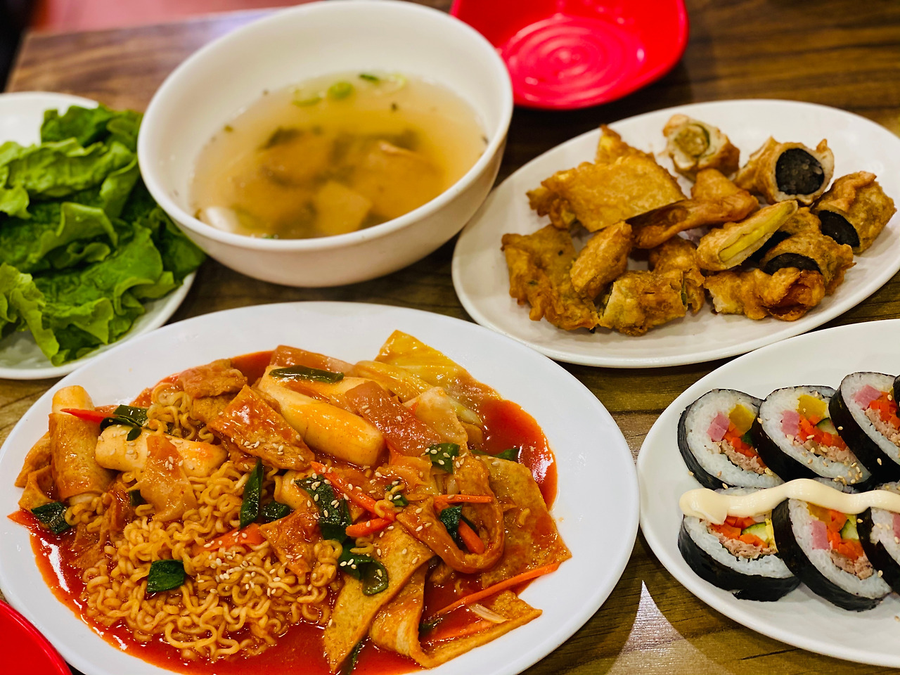 전북대 앞 분식집 진수성찬이다. 다 먹지 못해서 결국 김밥은 포장했다. 배가 든든해지는 분식집이다.