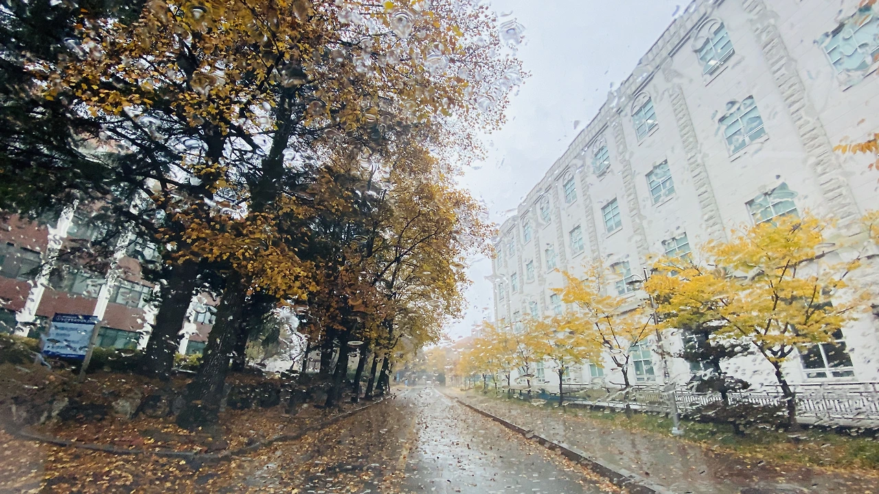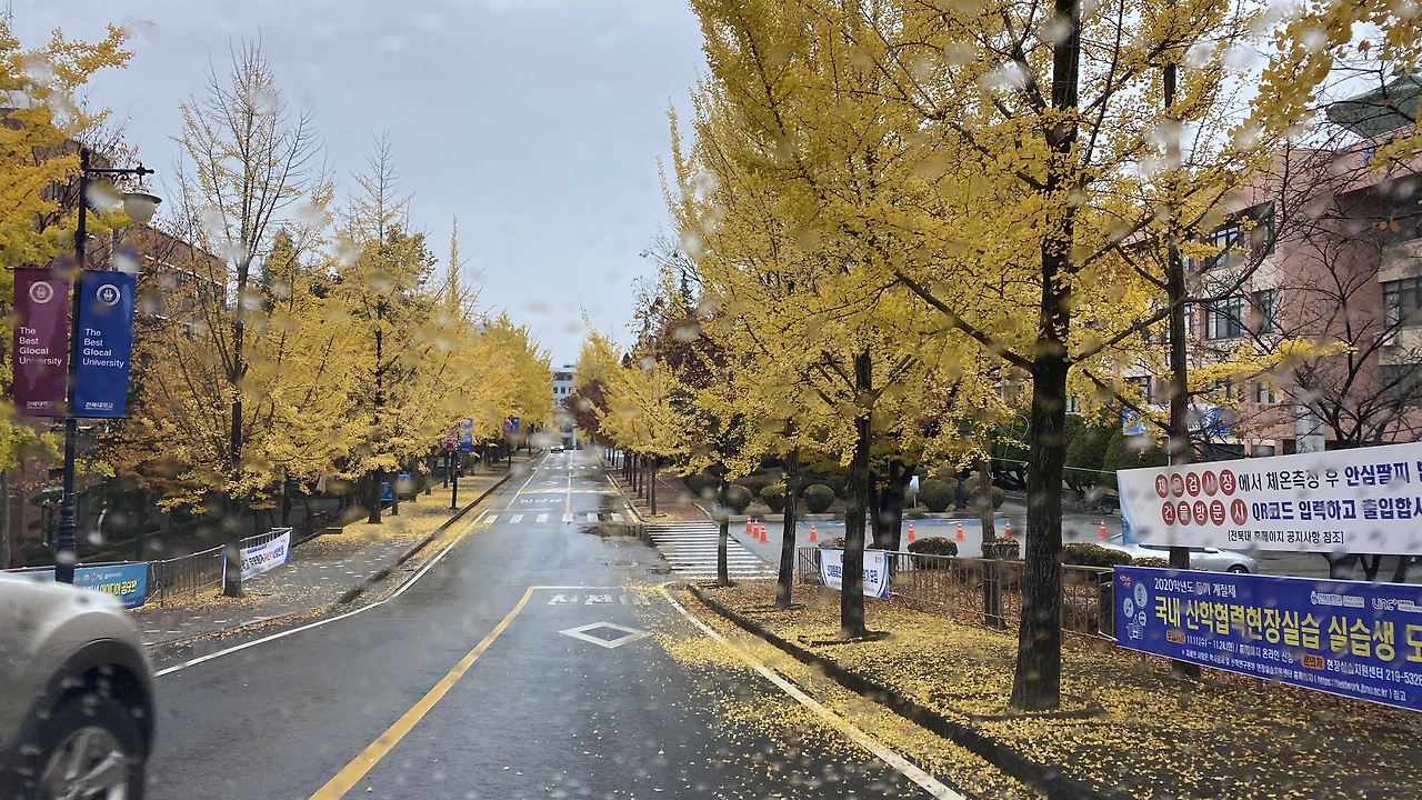 그다음 소개할 곳은 전북대학교의 가을이다. 은행나무 길, 메타세쿼이아 길, 농과대학 플라타너스 길 중에서 플라타너스 길에 차를 두고 한참 음악을 듣다가 내려서 걸었다. 가을비가 나의 가을 무드에 맞춰주듯이 조금 내려서 마음을 따뜻하게 적셔주었다.