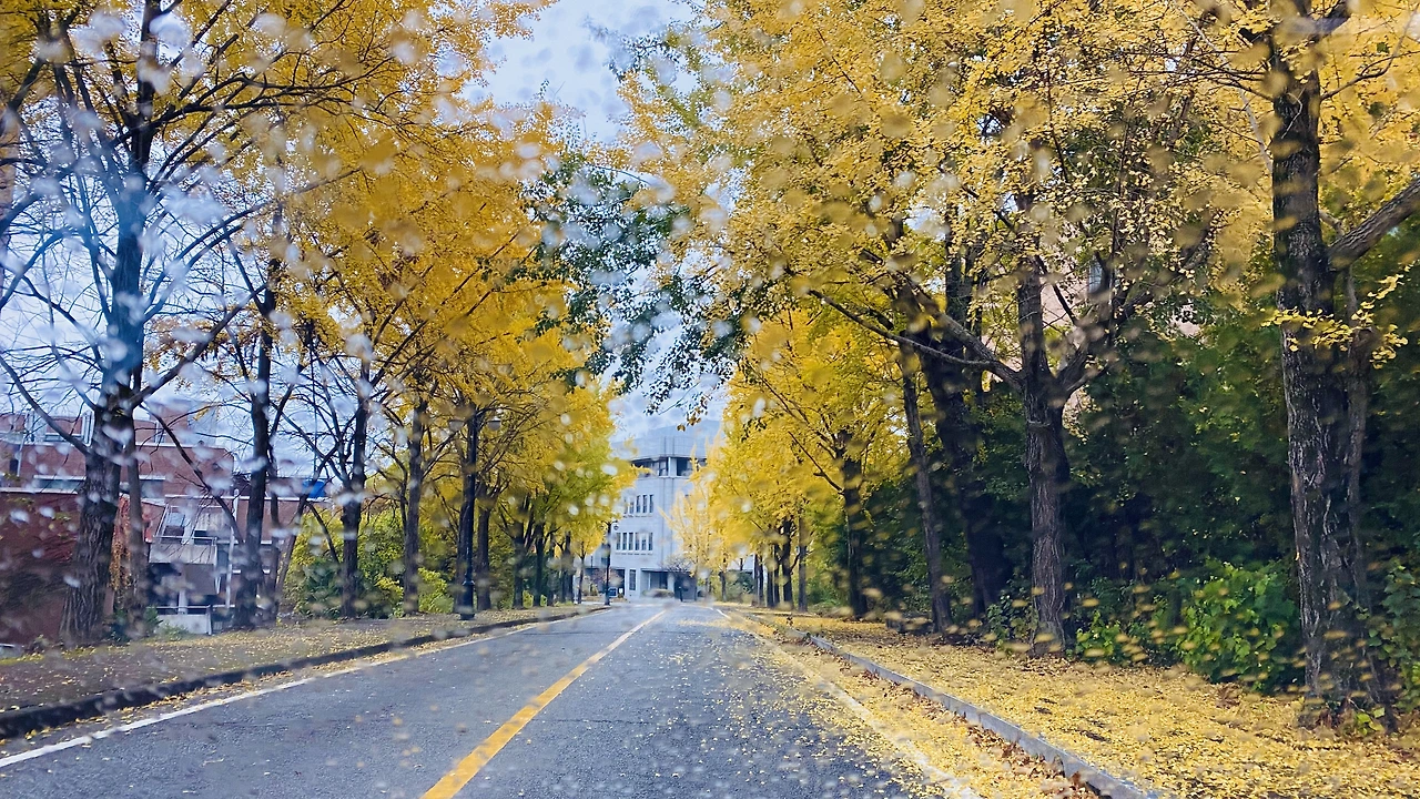 전주 객사길 드라이브만 해도 '아! 정말 아름답다.' 하는 감탄사가 절로 나온다. 파란 하늘을 수놓은 노란 은행잎들이 한가득 피어, 바람이 불면 마치 꽃잎이 날리듯 흩날리기 시작한다. 차의 바퀴가 도로를 구르면서 바람을 일으키면, 노란 낙엽들이 길 위를 떼굴떼굴 통통 튀면서 그 차를 따라간다. 뒤에서 앞차를 뒤따라가면서 그 광경을 보는 재미가 있다. 오늘은 바람이 많이 불어서 은행잎이 노란 눈처럼 소복이 길에 쌓였다. 차 안에서 사람들이 걷는 모습을 보면 푹신할까, 아니면 밟으면 뽀드득 소리가 날까 궁금할 지경이다.