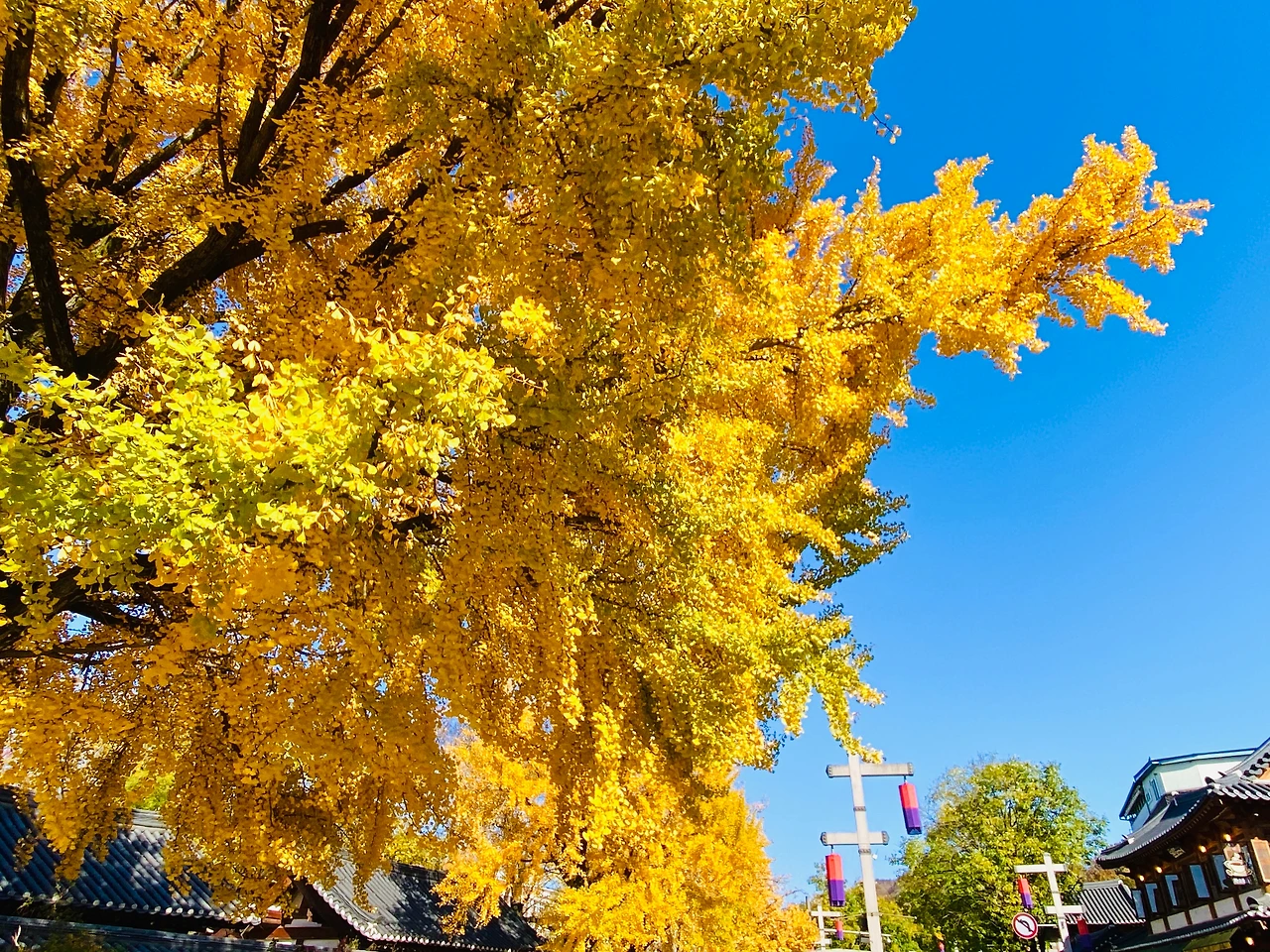 다음 추천할 장소는 한옥마을이다. 한옥마을은 한옥을 유지한 형태의 마을이기 때문에 전체적으로 높은 건물이 없다. 아날로그적 감성을 지녔다. 그래서 나들이를 하는 여행객들의 마음이 편안하다. 가을이면 향교의 은행나무는 멀리서도 한눈에 보일 만큼 키가 큰데, 몇 백 년씩 되었다. 은행 냄새가 코를 찌르지만 한옥마을 나들이 중 반드시 들르는 곳이다. 2주 전에 갔을 때보다 훨씬 은행잎이 노랗게 물들어 사람들이 사진 찍느라 바쁘다.