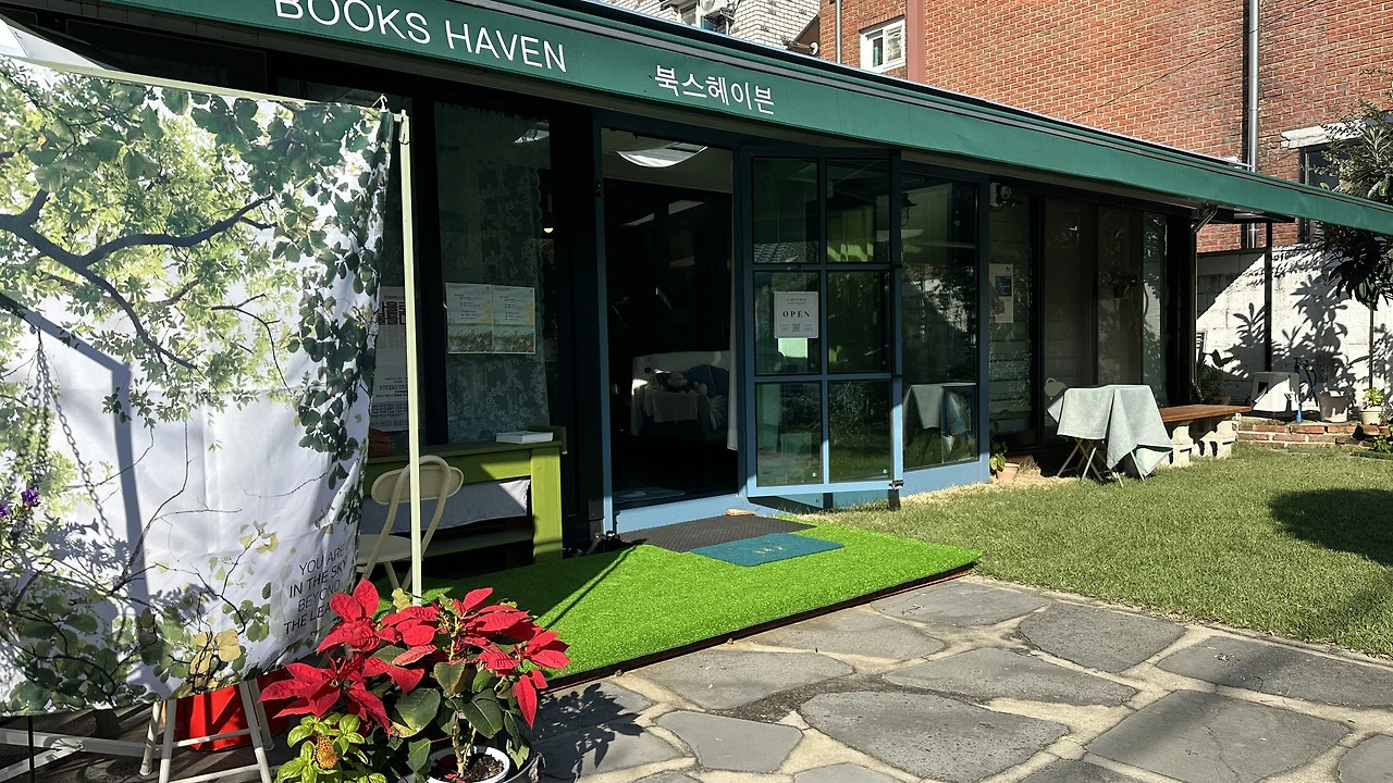 책이 쉬는 곳, 사람도 쉬는 곳, 북스 헤이븐, Haven은 쉼이란 뜻이다. 책, 책손님 그리고 책방에 거주하는 책방지기와 모든 생물들이 잘 쉬는 곳.