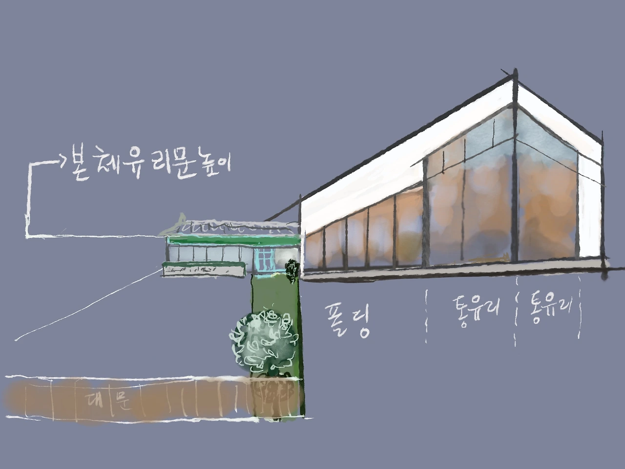 그래, 전체 통유리를 하고 흰색으로 나머지 외벽을 하면 낫지 않을까?