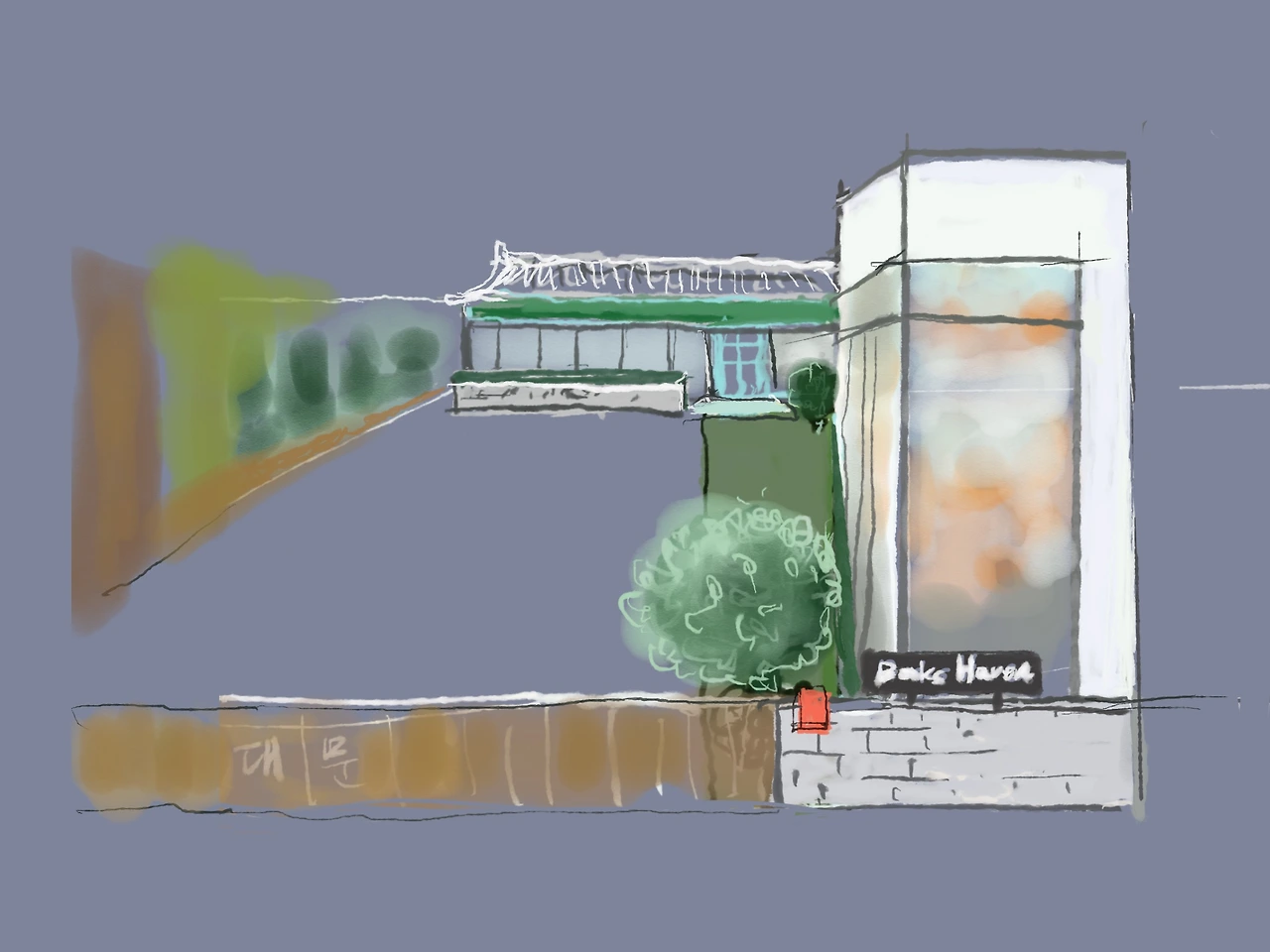 경관이 이상해지면 어쩌나 하는 걱정으로 잠이 오지 않아 그림을 그려봤다.