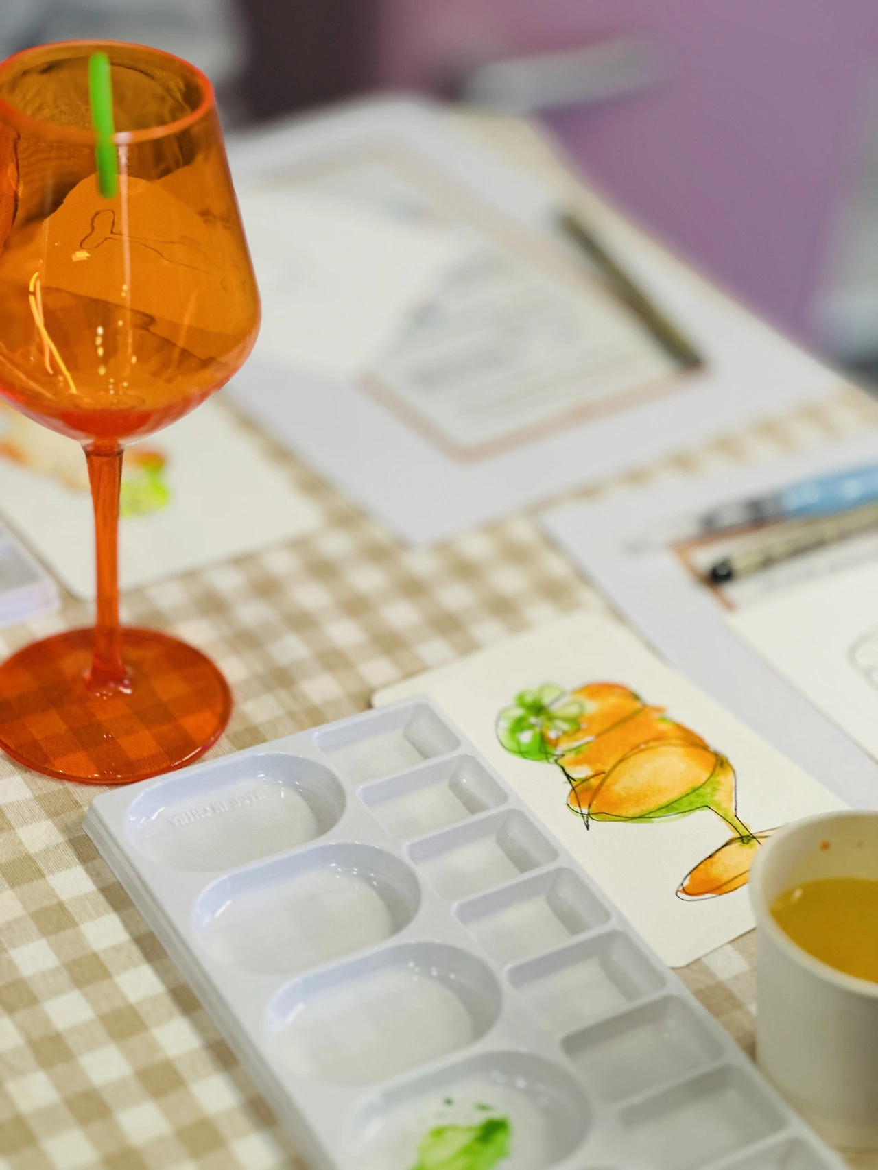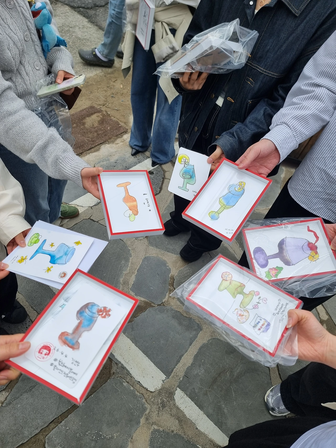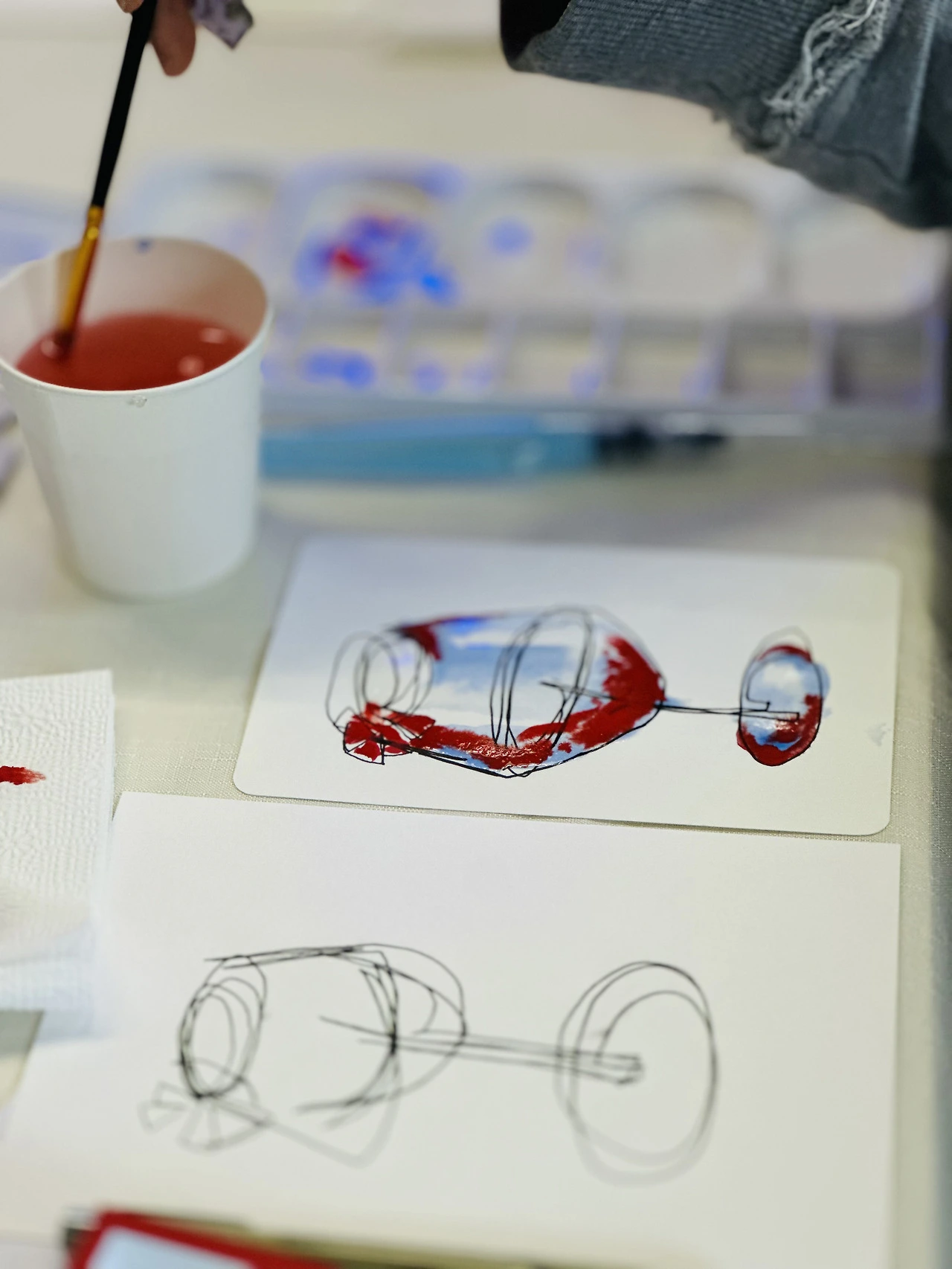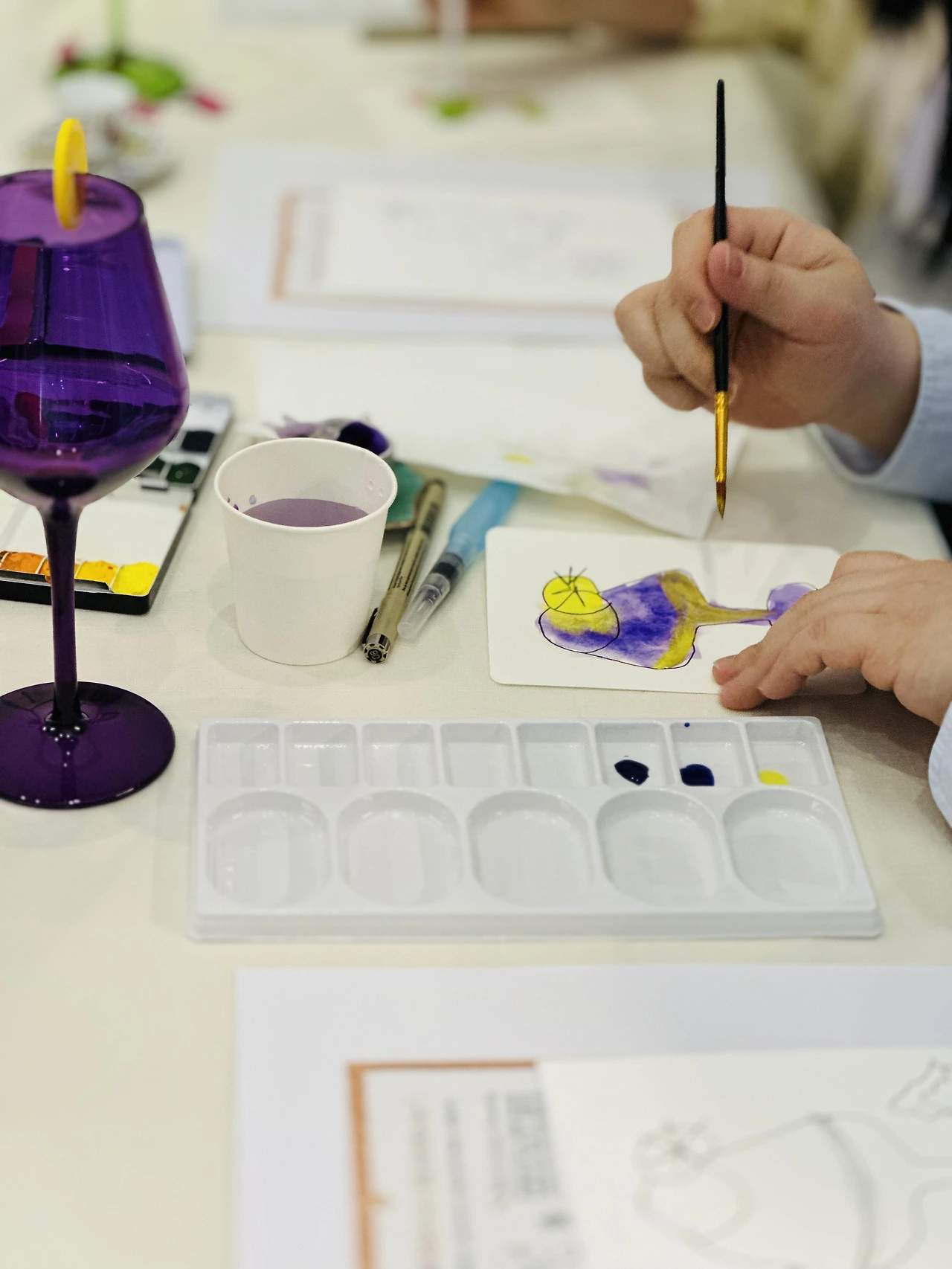 책방에서 그림 체험은 블라인드 컨투어 드로잉과 웻온웻(wet on wet) 기법을 가볍게 했다. 모두들 진지하셨다.
