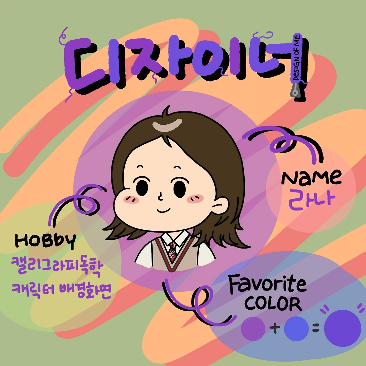 '라나'는 아이디어가 많고 매우 진중한 학생으로 1학년 때 꿈은 선생님이었는데, 2학년이 되어 여러 가지로 고민한 후 디자이너가 되기로 결심했습니다. 자신이 좀 더 이루고 싶은 분야라고 합니다. 곁에서 보면 무엇이든지 독학을 하는 스타일입니다. 자신의 모습과 정말 흡사한 모습의 라나 캐릭터, 정말 마음에 듭니다.