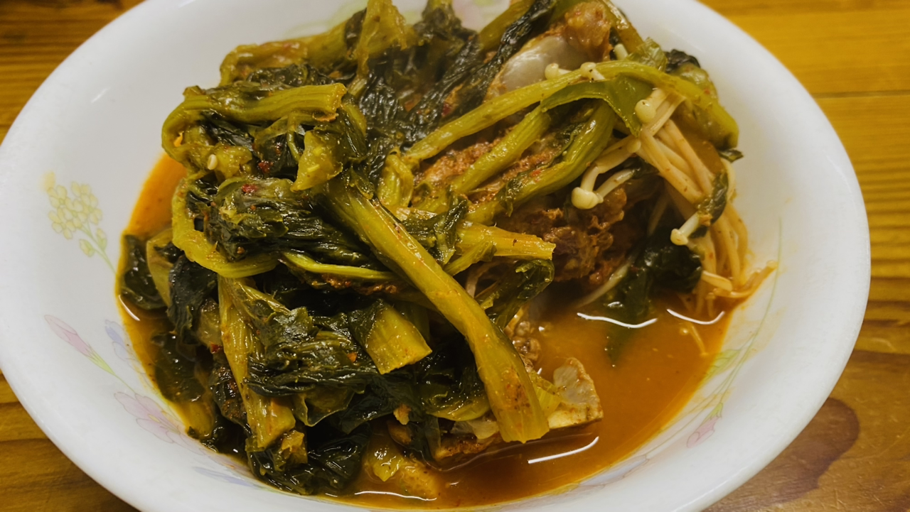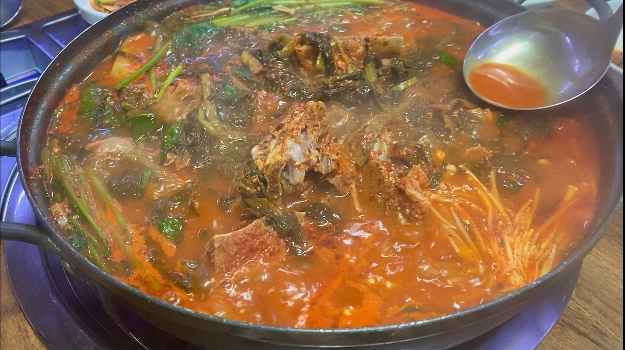 코로나가 창궐하기 시작해서 걱정이지만 아이들의 아버지이자 나의 남편의 인도 사진전이 열리는 것을 꼭 보겠다고 둘째가 내려왔다. 그런데 전시회가 주목적인지 먹거리가 주목적인지 알 수가 없다. 서울에서부터 지속적으로 '배두둑 감자탕'을 노래했기 때문에 딸이 오는 날 저녁, 즉 어젯밤에 긴급 공수해서 늦은 밤 도착한 딸에게 대령했다. 뜨끈한 김이 모락모락 할 때 찍었어야 하는데 아쉽다. '배두둑 감자탕'은 고깃살 붙어 있는 것을 떼어먹는 재미도 있지만 시래기가 별미다. 딸 덕분에 맛있게 먹었다.