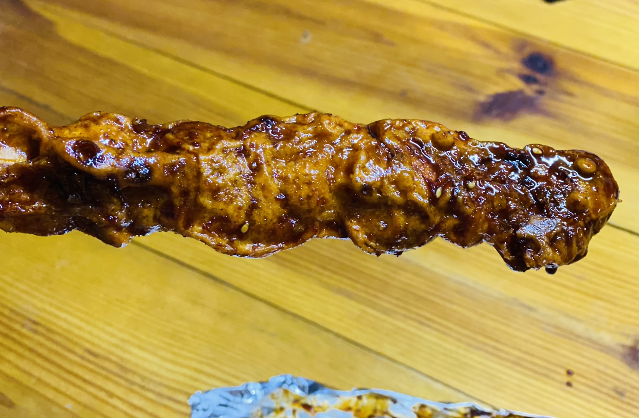 닭꼬치 하나 사 들고 집에 왔다. "그거 맛있니? 엄마 딱 한입만 먹어볼게."