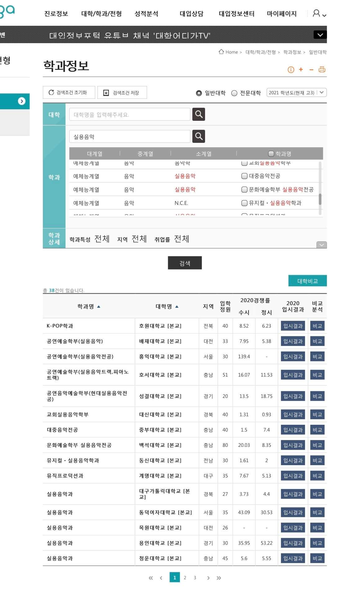 학과 정보에 실용음악을 검색해 보세요. 조금은 도움이 될 것 같습니다.