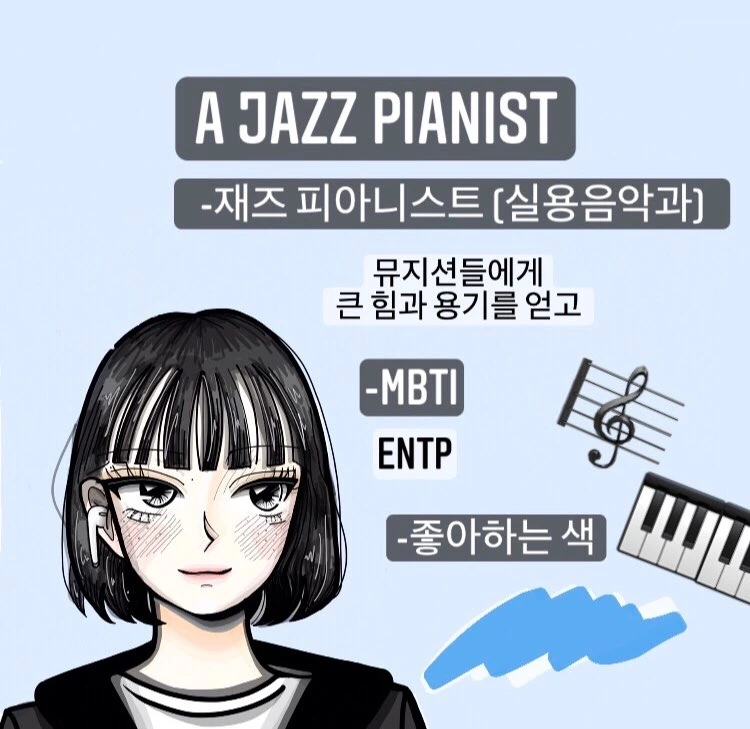 '재즈 피아니스트'의 꿈을 지닌 친구의 이야기를 듣고 캐릭터화 했습니다.