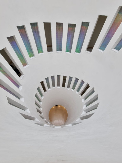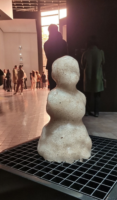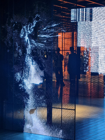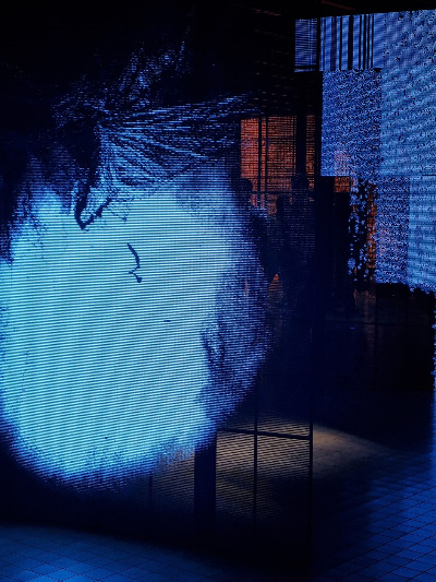 따뜻한 열기에 녹아내리는 '리얼리티 파크의 눈사람'부터 천장에서 피아노를 거쳐 바닥으로 쏟아지는 주홍빛 눈 작품인 '여름 없는 한 해 2024', 내 앞을 유유히 떠다니는 물고기 'My room is another fishbowl'과 천장 또는 사람들 앞에 부유하는 물고기를 보느라 머리가 상하좌우로 움직이고 있었다. 벽면 두 곳엔 자이로드롭처럼 생긴 작품 '움직이는 조명들 2024'가 빛을 뿜고 있었고 전시 테마인 알 수 없는 '보이스'가 사람들 사이를 가득 메우고 있었다. 천장엔 움직이는 태양열 판처럼 생긴 스피커가 여러 곳에서 방향을 달리하며 테크노 춤을 추고 있는 것 같았다. 북적이는 관람객들 사이에 끊임없이 무언가를 전파하고 있는 작품들. 우리가 사는 시대를 그대로 옮겨 놓은 공간이었다.