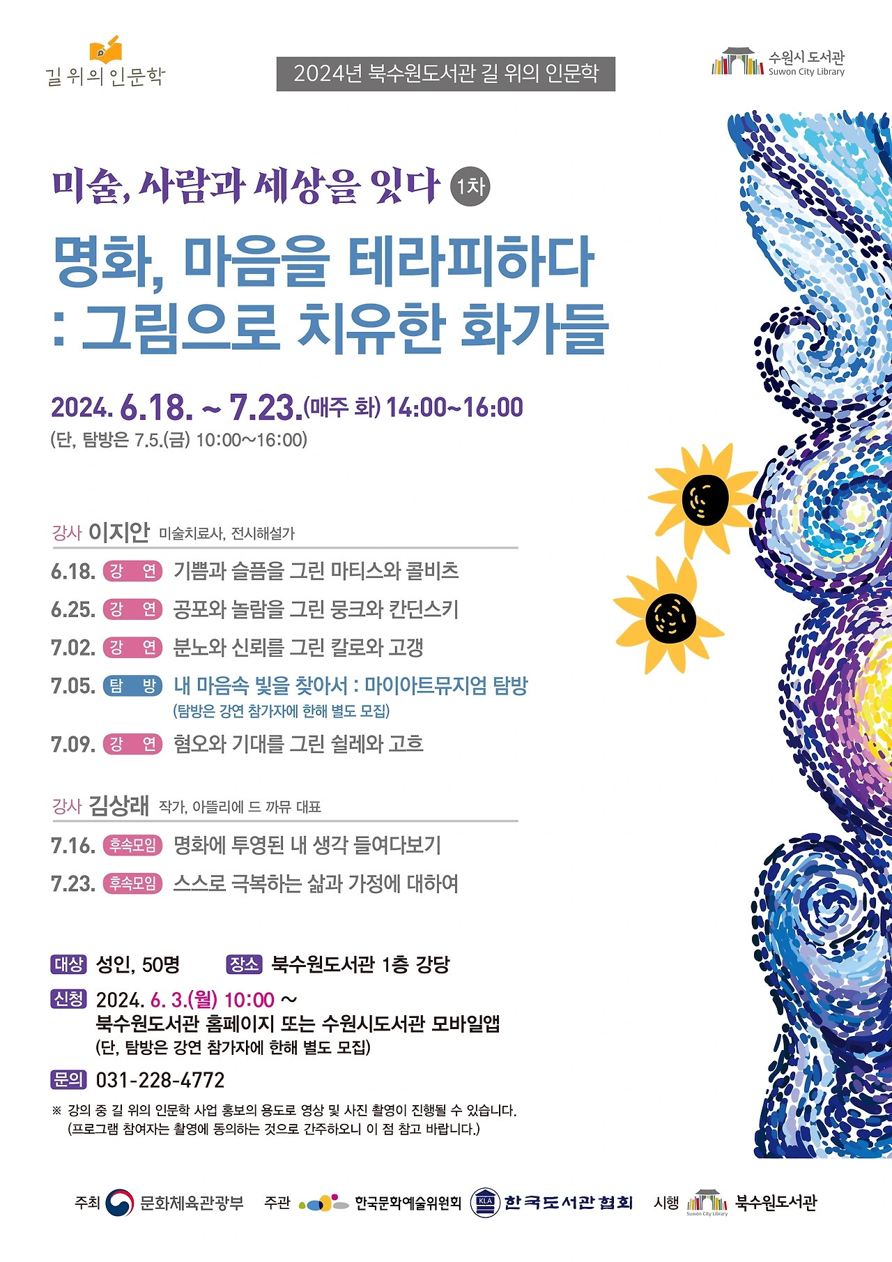 #길위의인문학 #명화테라피 #북수원도서관 #김상래작가 #아틀리에드까뮤 #이지안미술치료사 #미술인문학