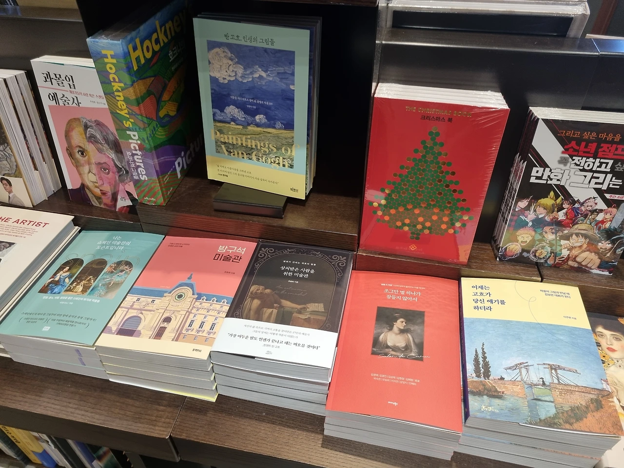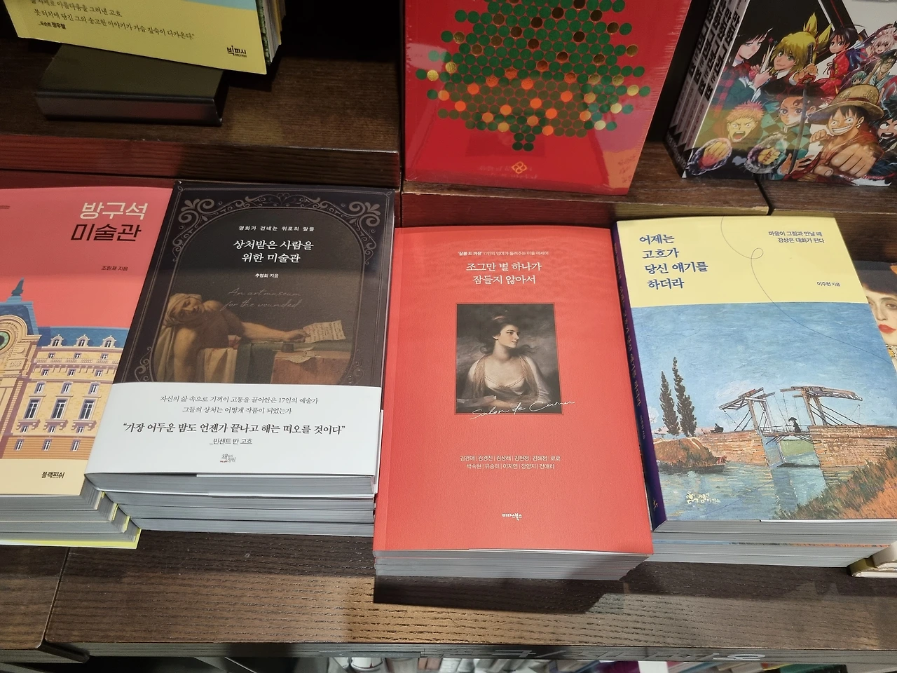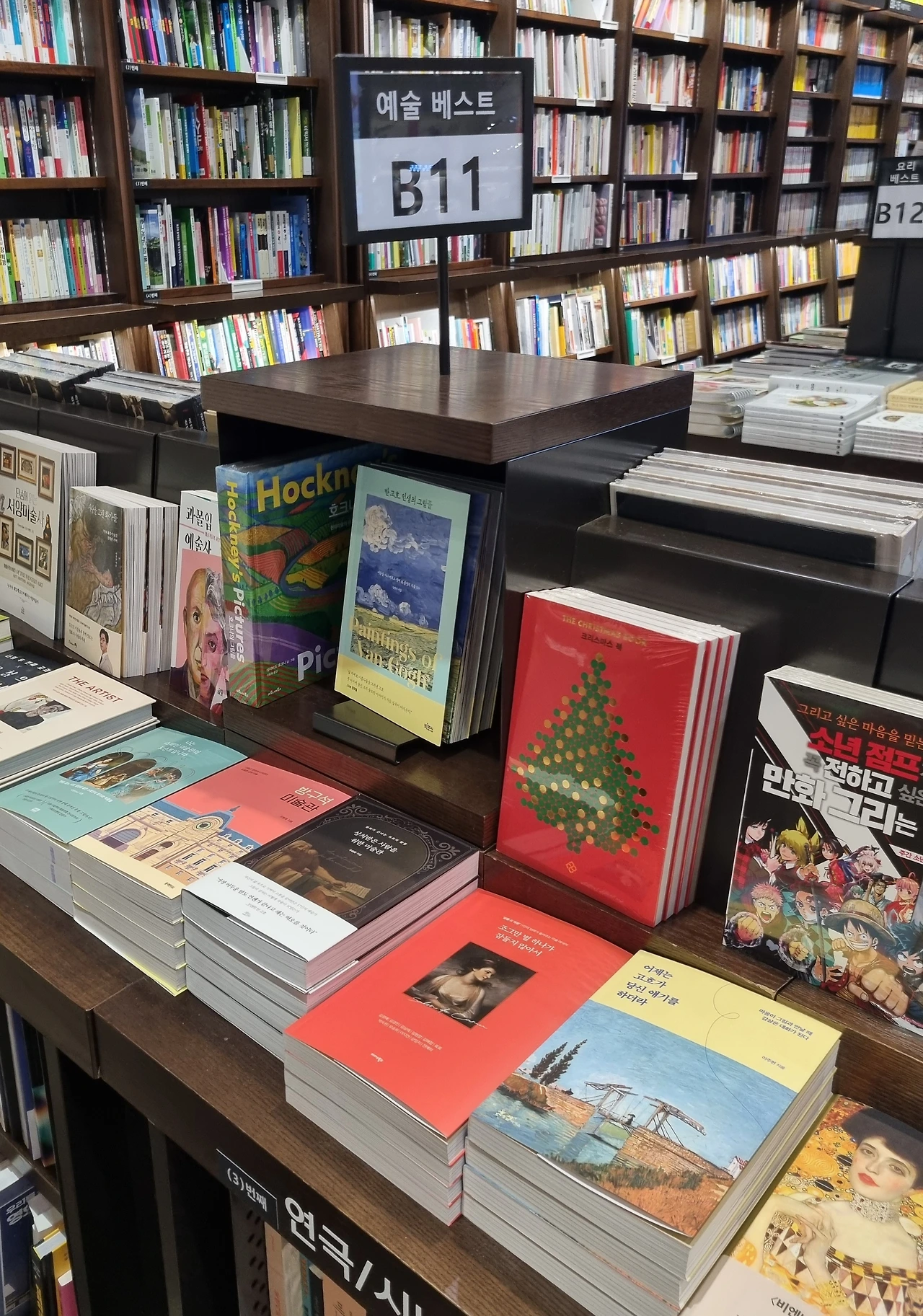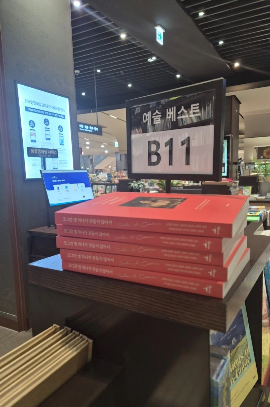 교보문고 광교점 예술 베스트 코너에 예쁘게 자리 잡은 오렌지색 책입니다. 연말 크리스마스 선물은 '조그만 별 하나가 잠들지 않아서'로 삼삼오오 모여 앉아 책 나누고 글쓰는 연말 되세요!
