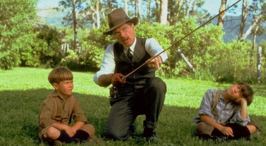 햇살이 강가에 쏟아지고, 그곳에 젊은 브래드 피트도 서 있었다. 무모하고 반짝이던 청춘, 거침없이 물살을 가르며 미끼를 던지는 사람. 〈흐르는 강물처럼〉은 겉으로 보면 두 형제의 성장기이지만, 조금 더 깊이 들여다보면 인간의 이해할 수 없음, 사랑의 방식, 잃어버린 시간에 대한 명상이 숨어 있다. 낚시는 영화 전체를 이끄는 중요한 메타포다. 아버지는 메트로놈을 켜고 시계방향 10시에서 2시 사이로 낚싯줄을 던져야 한다고 가르친다. 마치 춤을 추는 것처럼 허공중에 부드럽게 움직이는 플라잉 낚시. 낚시는 가족 간의 대화이자 아버지가 아들에게 들려주고 싶은, 삶을 살아가는 방식에 대한 무언의 이야기다.
