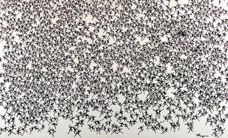 그림을 오래 바라보다 보면, 군상 전체가 하나의 유기체처럼 느껴진다. 그 안에는 공격성과 연민, 욕망과 두려움, 고독과 소속의 양면성이 공존한다. 다윈은 <종의 기원>에서 '인간은 단순한 생존의 기계가 아니라 감정의 균형으로 진화한 존재다'라고 했다. 우리는 서로에게 상처를 주고, 또 서로를 통해 회복한다. 그 반복 속에서 인간은 자신의 결을 다듬으며 세상 속 자리를 찾아간다.