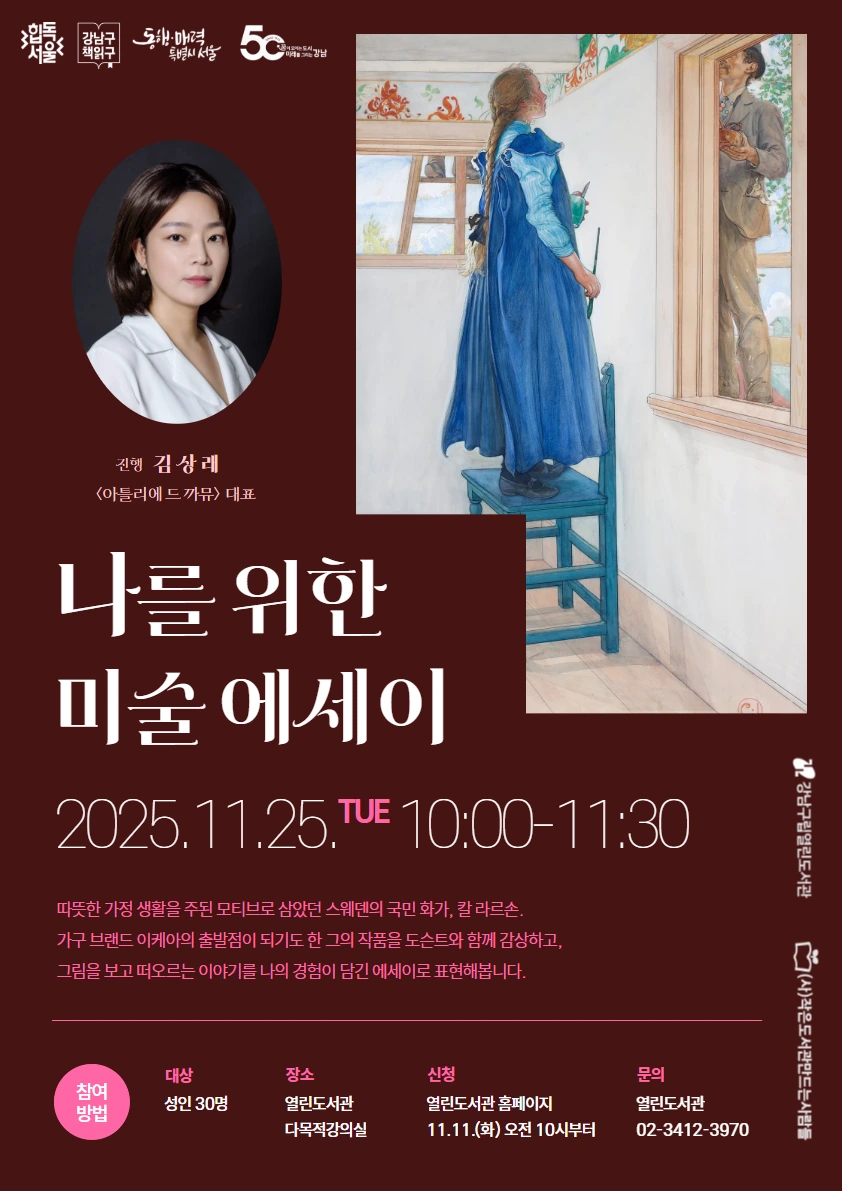 #나를위한미술에세이 #강남구립열린도서관 #칼라르손 #도슨트김상래 #미술에세이 #김상래작가 #아뜰리에드까뮤