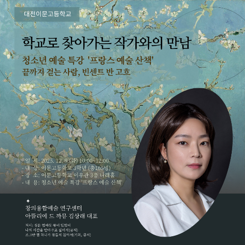 #청소년예술특강 #고등학교특강 #석봉도서관 #대전이문고등학교 #프랑스예술산책 #수능후프로그램 #미술사강연 #학교강연문의 #창의융합예술연구센터 #아뜰리에드까뮤 #김상래