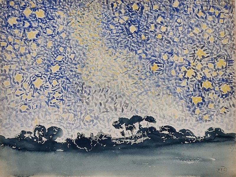 최근에 본 앙리 에드몽 크로스의 ⟪별이 있는 풍경, 1905~1908년경⟫ 작품 앞에서도 나는 아이의 4300킬로미터를 떠올렸다. 화면 위쪽을 가득 채운 건 잎사귀인지 별빛인지 모를 푸른 점과 조각들이다. 가까이에서 보면 그저 흩어진 물감 조각일 뿐인데, 조금만 뒤로 물러서면 하나의 하늘이 된다.