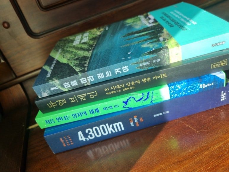 책 좋아하는 가족답게, 이렇게 책을 보내주시는 일이 종종 있다. 제일 먼저 아이가 말했던 그 책, 4300킬로미터를 적었다. 그 아래에는 남편이 읽고 싶은 양자역학 관련 책, ‘이번 겨울에는 꼭 읽어야지’ 마음먹고 있던 내 책까지 차례대로 더해 어머님께 리스트를 보냈다.