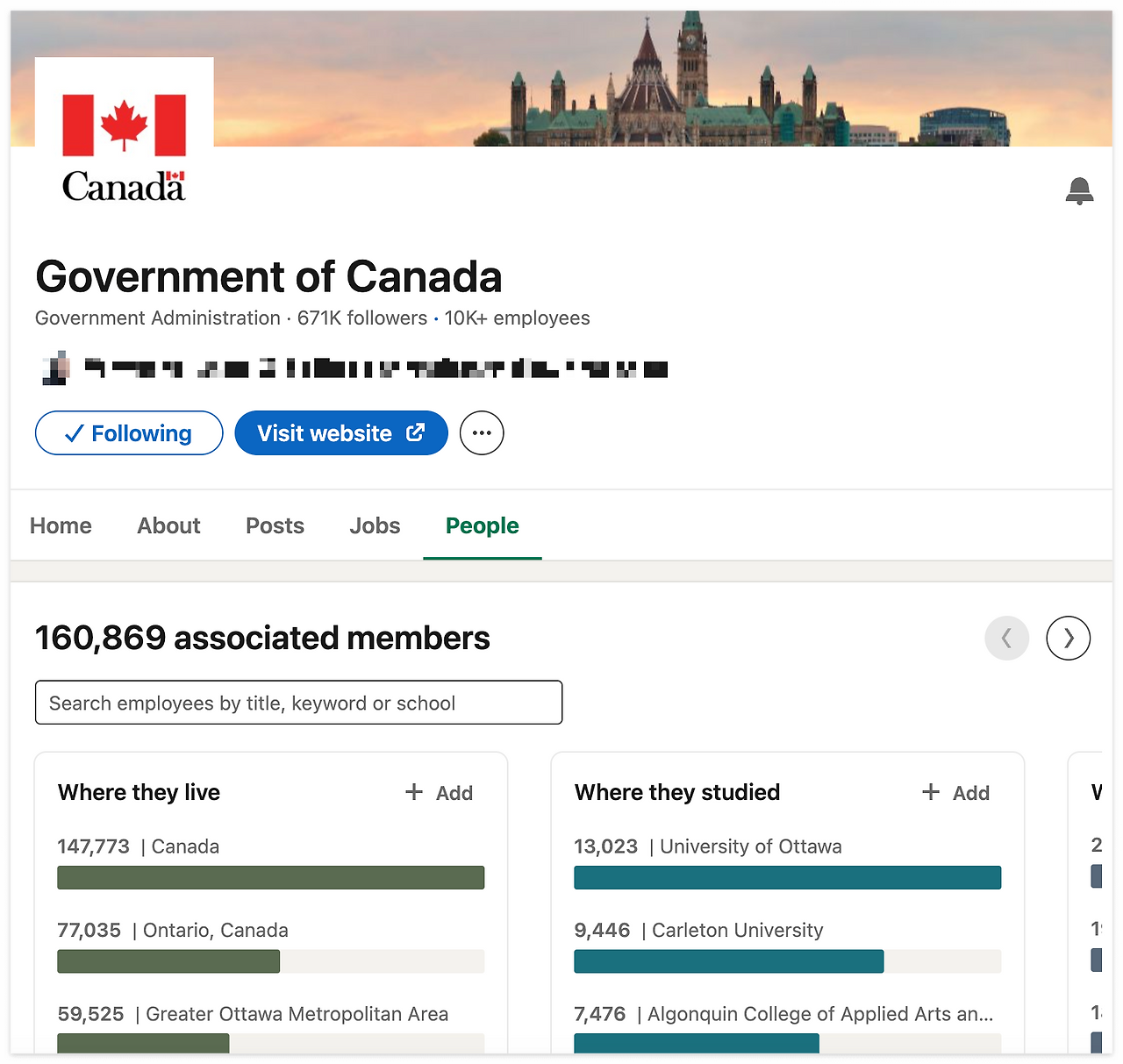 캐나다 연방정부 링크드인 페이지