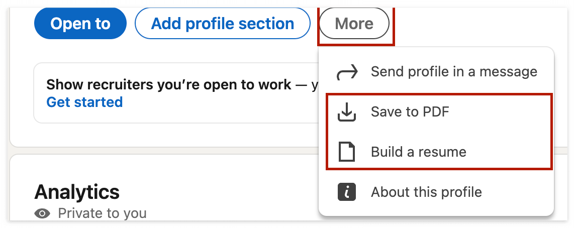 링크드인 프로필 밑에 More 버튼 누르기