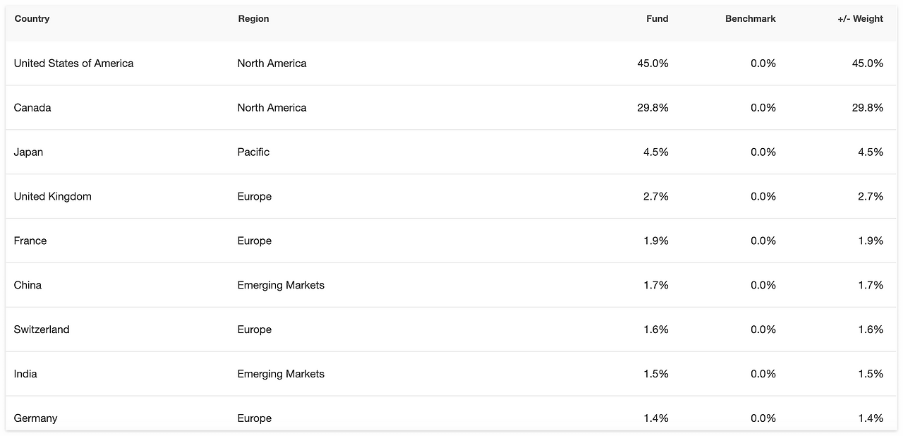 주식 100%인 뱅가드의 VEQT만 보더라도 미국, 캐나다, 일본 등 다양한 국가의 주식으로 이루어져 있다. 위에서 소개한 세 회사의 차이점은 어떤 펀드를, 얼마만큼의 비율로 가지고 있는가에 따라 다른 정도라고 할 수 있다.