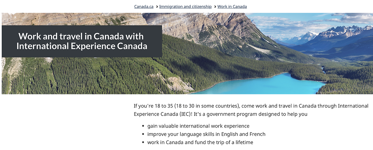 이제 캐나다 IEC 프로그램은 만 35세 이하의 청년들을 대상으로 세 가지 카테고리를 운영한다. 워킹홀리데이, 영 프로페셔널, 인터내셔널 코옵 프로그램이다.