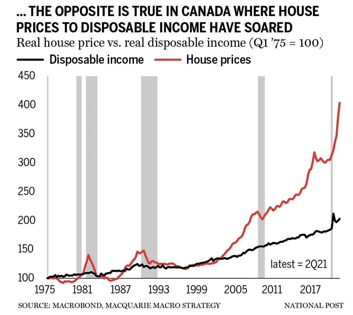 캐나다는 집값 상승분이 소득 상승분을 훌쩍 넘어섰다.