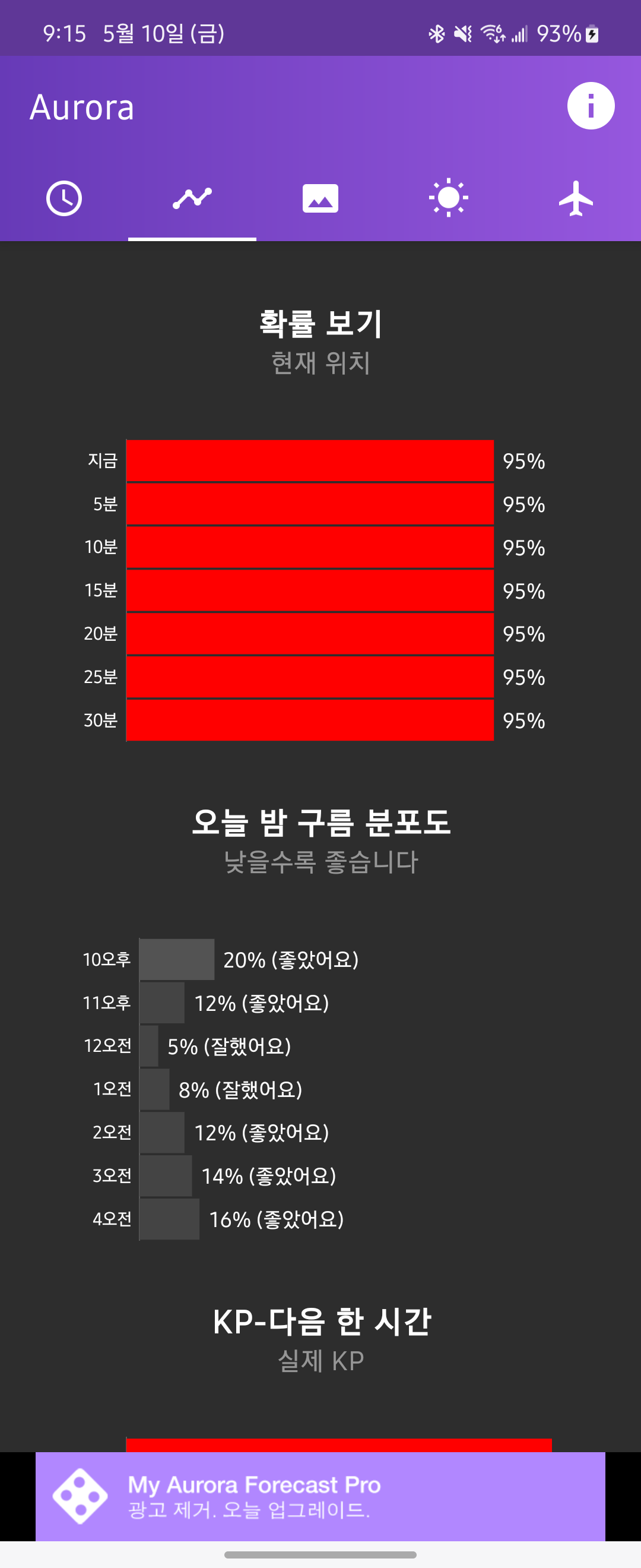 정말 역대급 오로라 예보가 떴다. 정말 한 번도 볼 수 없었던 예보 수치.