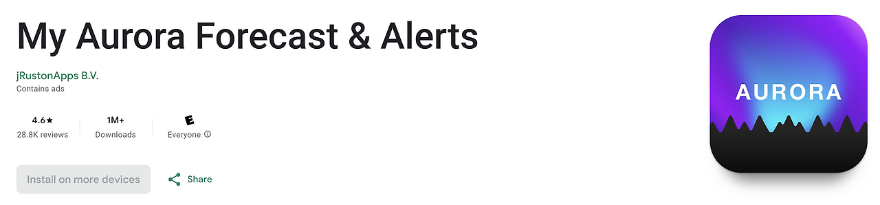 오로라를 볼 수 있는 확률이 높아지면 자동으로 알림을 보내주는 앱인데, 오늘 오랜만에 이 앱에서 알림이 왔다. 구름이 가득 낀 날씨인 데다가 (구름이 많으면 오로라를 보기가 힘들다), 내일은 비바람이 예보되어 있어서 별로 대수롭지 않게 생각했다.